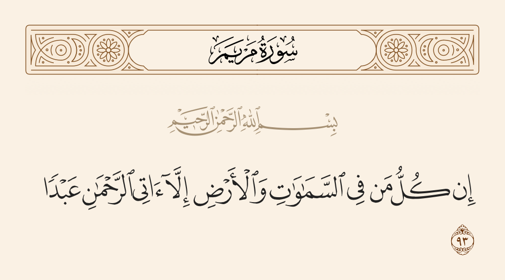 قال تعالى: «إِنْ كُلُّ مَنْ فِي السَّمَاوَاتِ وَالْأَرْضِ إِلَّا آتِي الرَّحْمَنِ عَبْدًا».