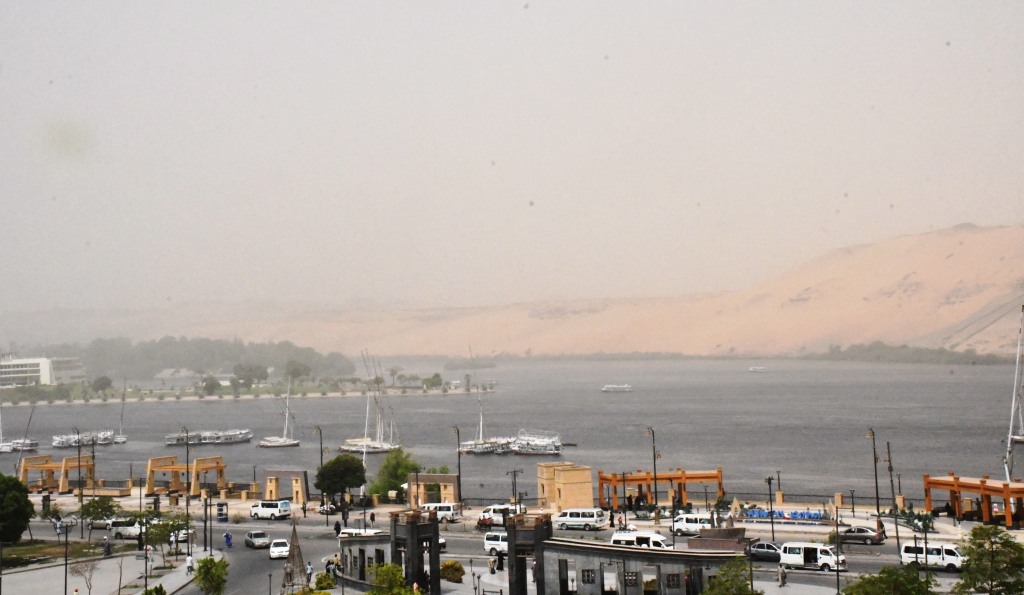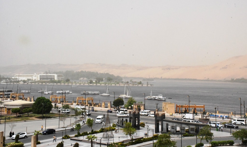 رياح محملة بالأتربة في أسوان، والمحافظ يتابع حالة الطرق (صور)