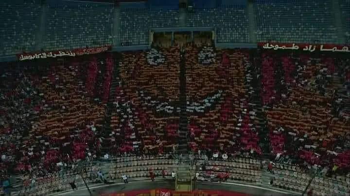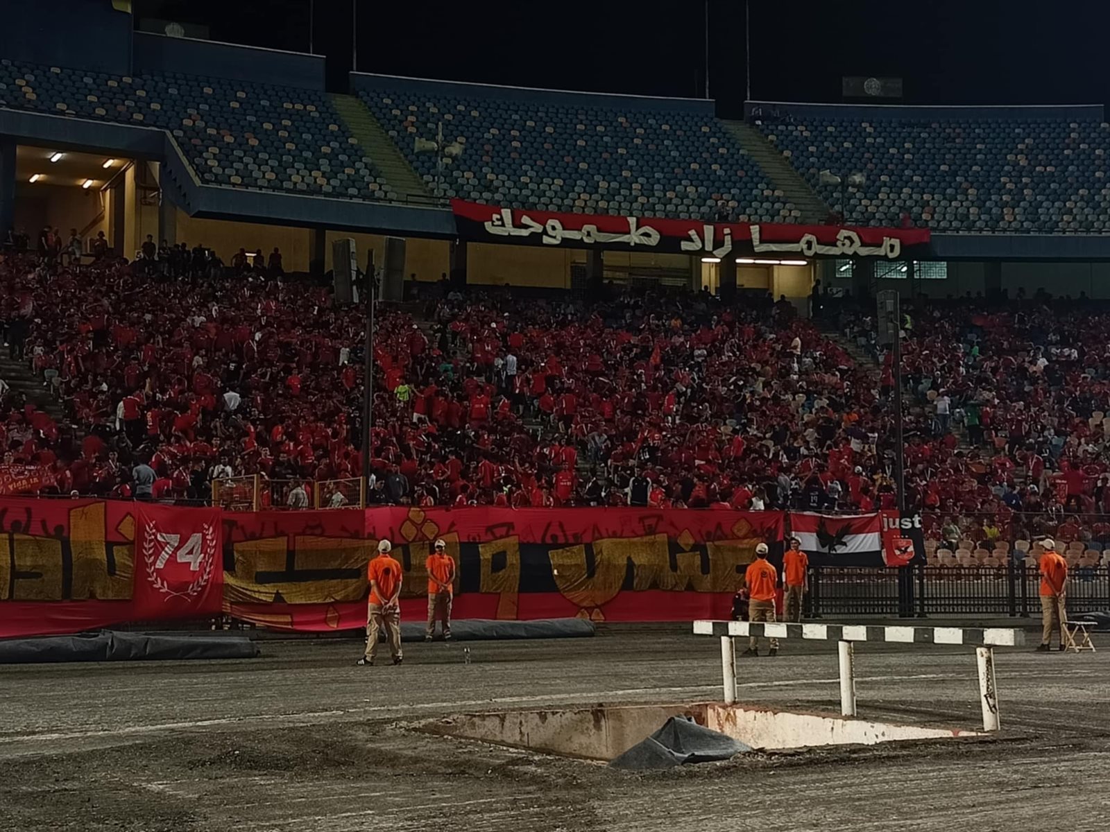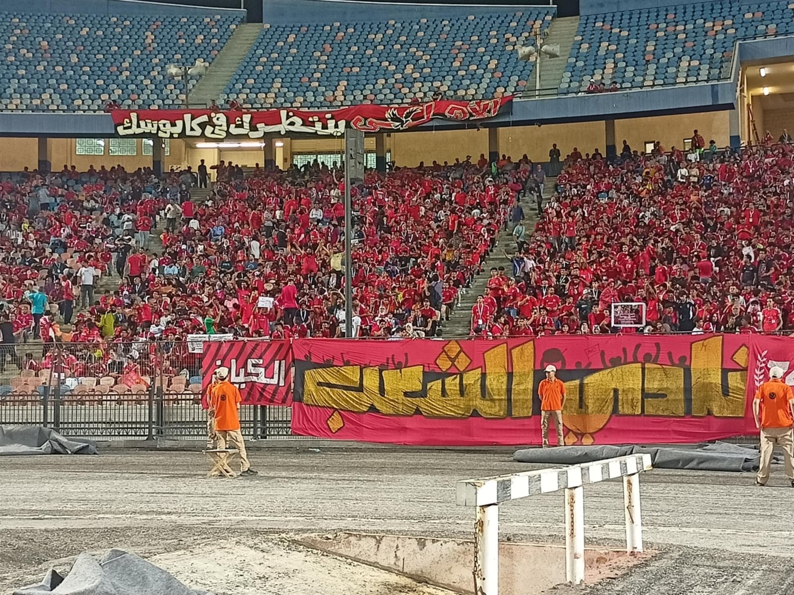 ورفعت جماهير الأهلي تيفو يحمل عبارة “مهما زاد طموحك.. الأهلى ينتظرك فى كابوسك”.