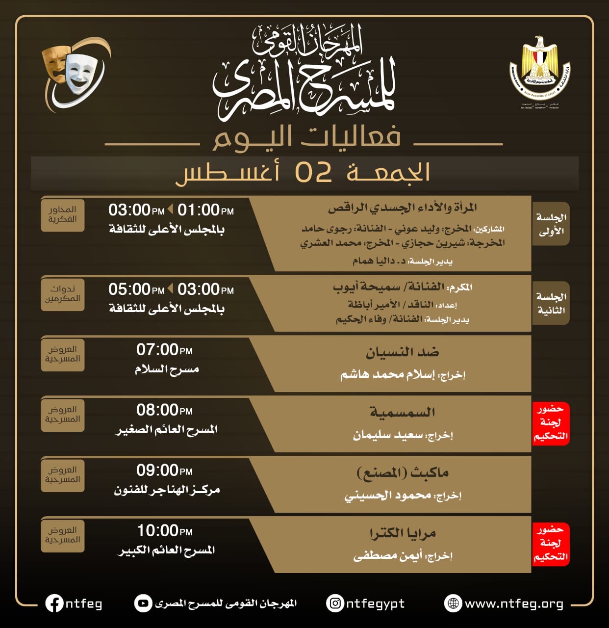 تعرف على فعاليات اليوم الجمعة بالمهرجان القومي للمسرح