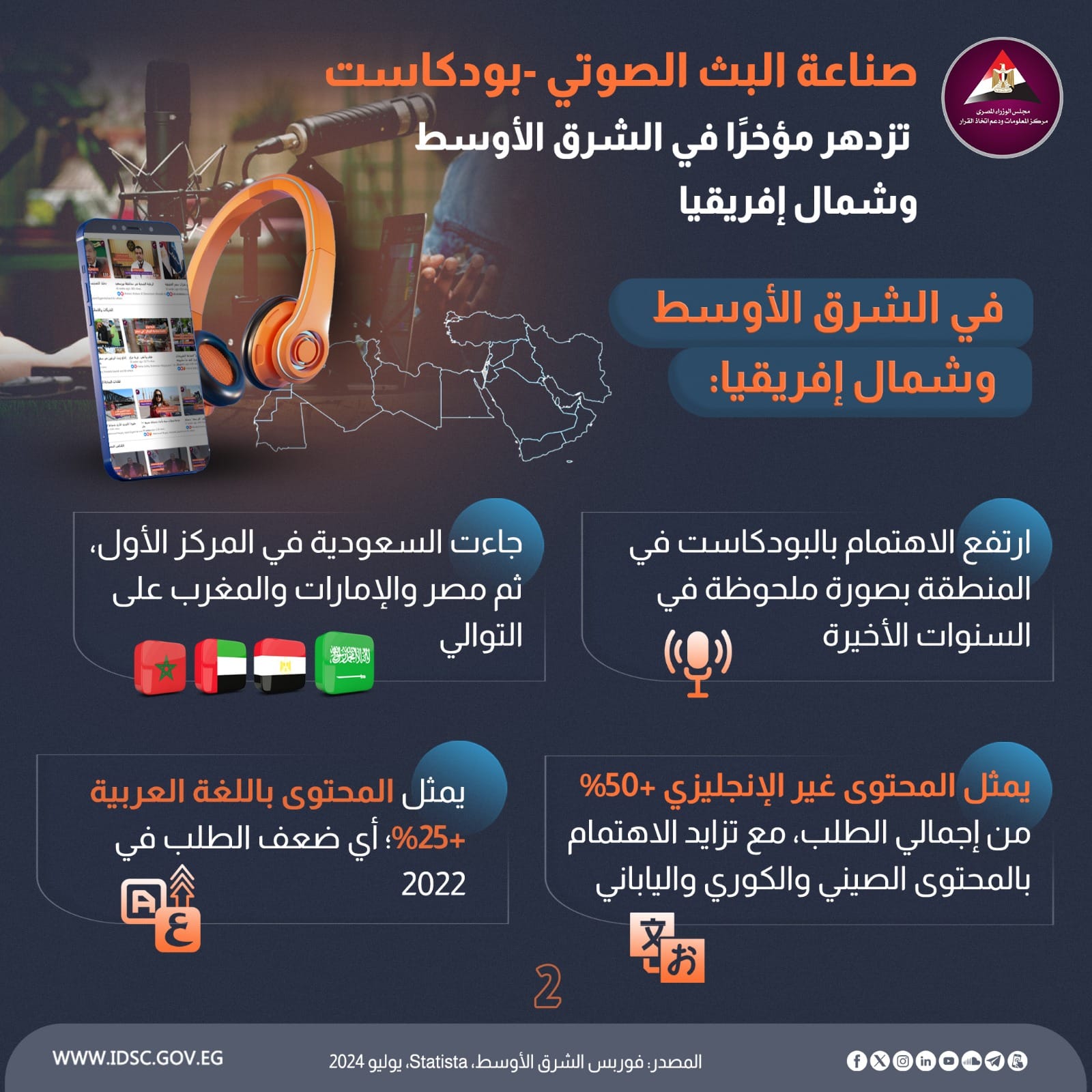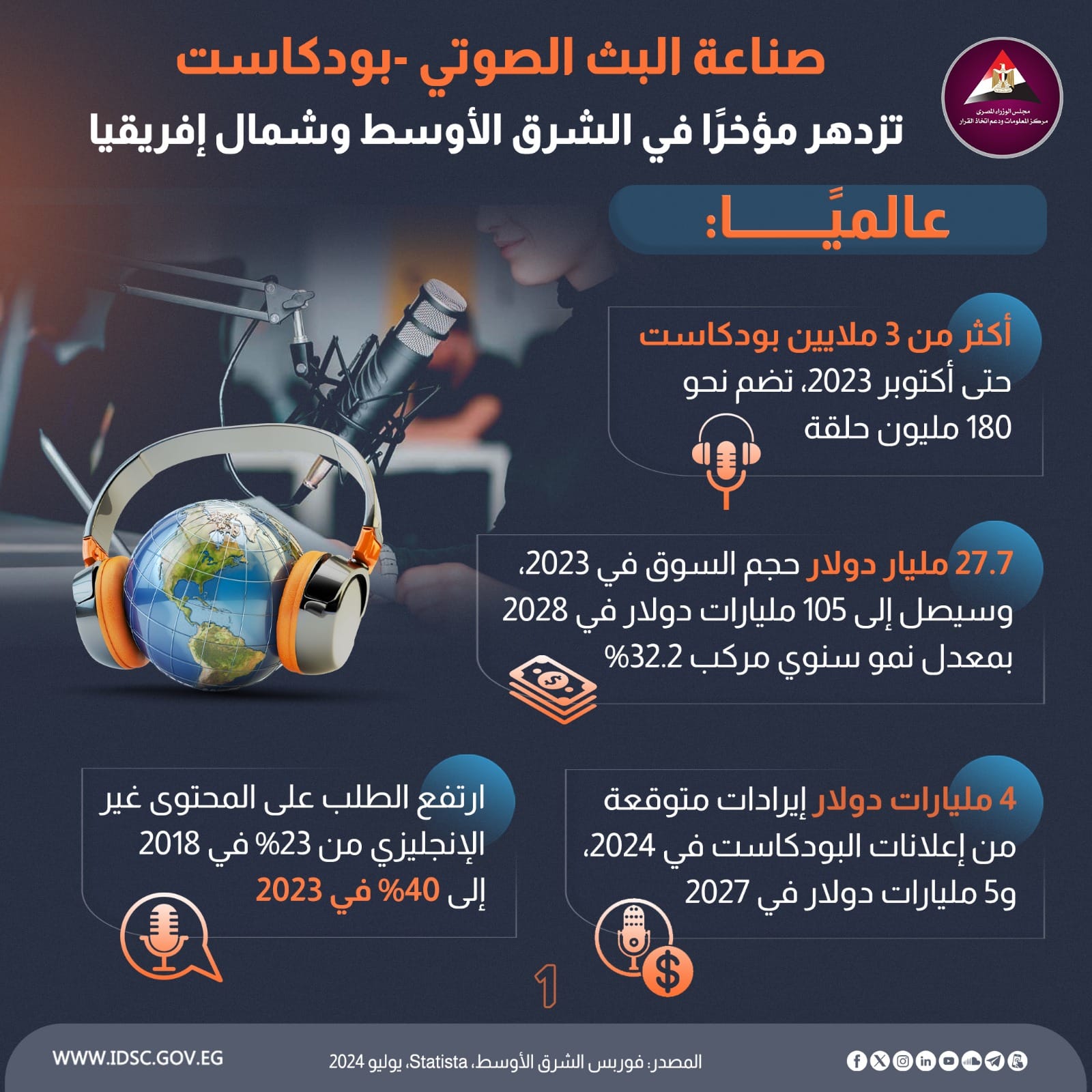 الوزراء: 4 مليارات دولار إيرادات متوقعة من إعلانات البود كاست في 2024 (إنفوجراف)
