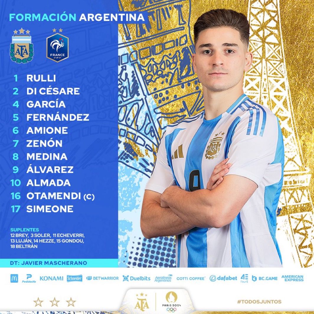 أولمبياد باريس 2024، تشكيل فرنسا والأرجنتين في ربع النهائي