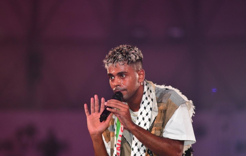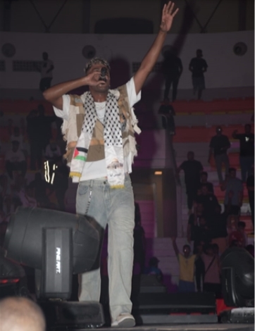 واختتم الحفل الذي استمر أكثر من 3 ساعات متواصلة، نجم الراب المصري عفروتو، والذي أبدى سعادته بأول حفل له في بنغازي، وكان مرتديا الشال الفلسطيني، ثم غنى مجموعة من أشهر أغنياته، وسط تفاعل جماهيري كبير ورقص وبهجة، أضافها على حفل الختام، خاصة بعدما أكد تضامنه مع الشعب الفلسطيني، وهتف مع الجمهور فلسطين حرة.