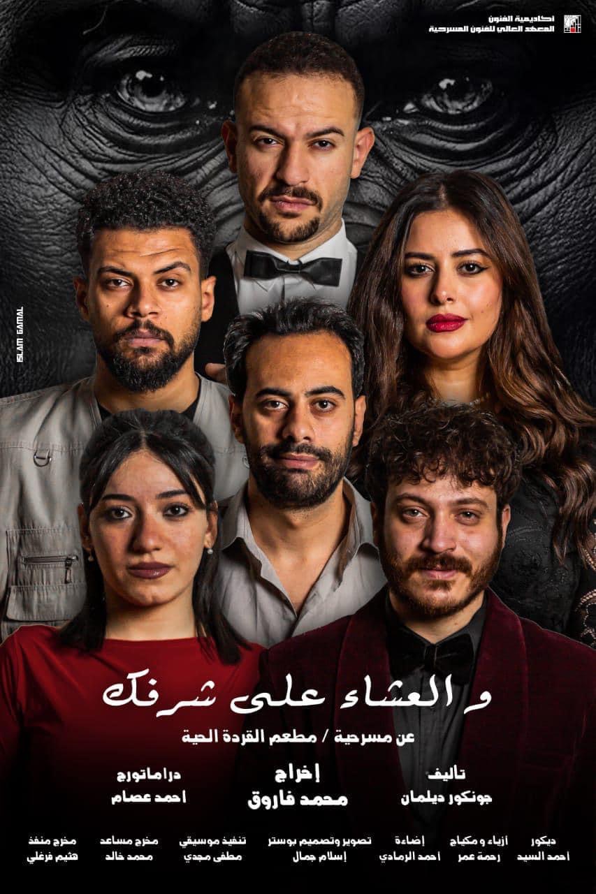 العرض المسرحي "والعشاء على شرفك" مأخوذ عن نص "مطعم القردة الحية" من تأليف جونكور ديلمان، دراماتورج أحمد عصام، إخراج محمد فاروق.