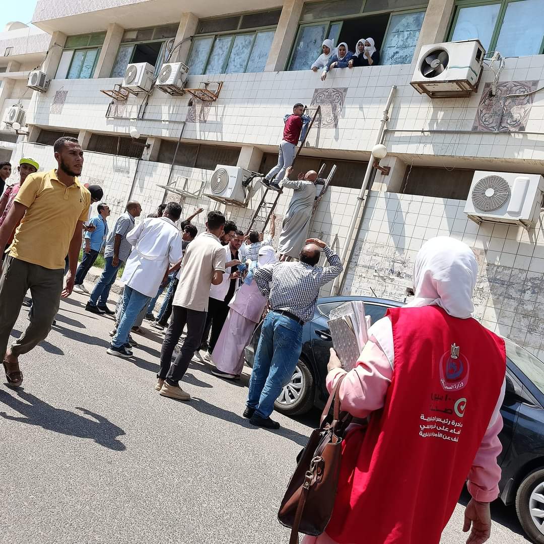 لحظة إنزال أطفال الحضانات في حريق مستشفى السادات بالمنوفية (فيديو)