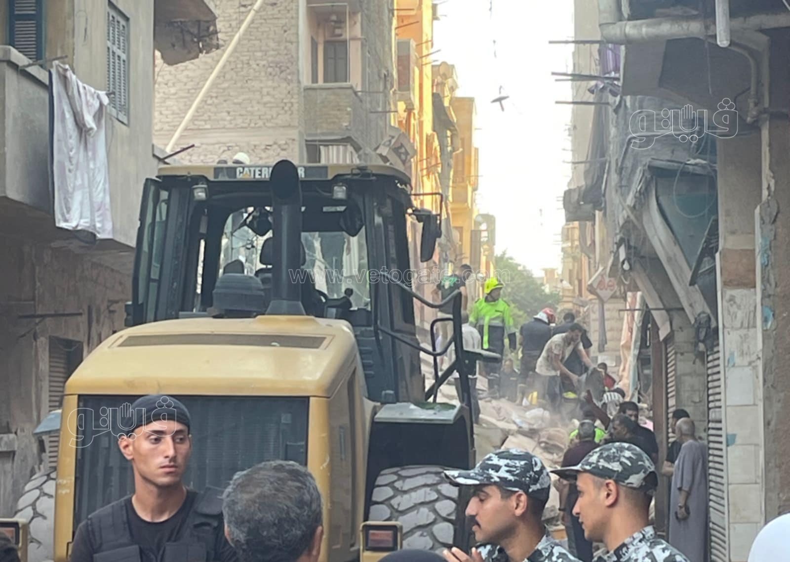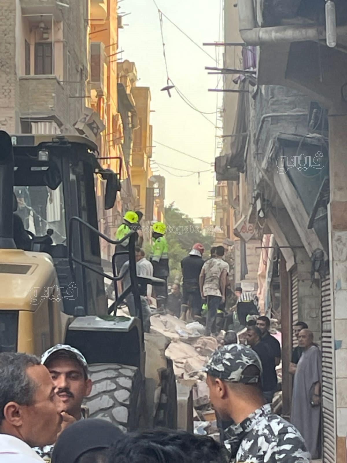وبالانتقال والفحص، تبين من المعاينة انهيار منزل مكون من 5 طوابق ف وقامت قوات الإنقاذ البرى باستخراج المصابين وتبين إصابة شخصين في الحادث بكدمات وتم نقلهما للمستشفى لتلقي العلاج اللازم فيما يتم البحث عن ناجين وتتم اتخاذ الإجراءات القانونية.