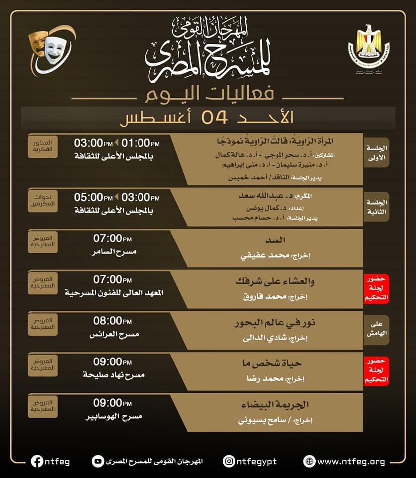 تعرف على فعاليات وعروض المهرجان القومي للمسرح اليوم