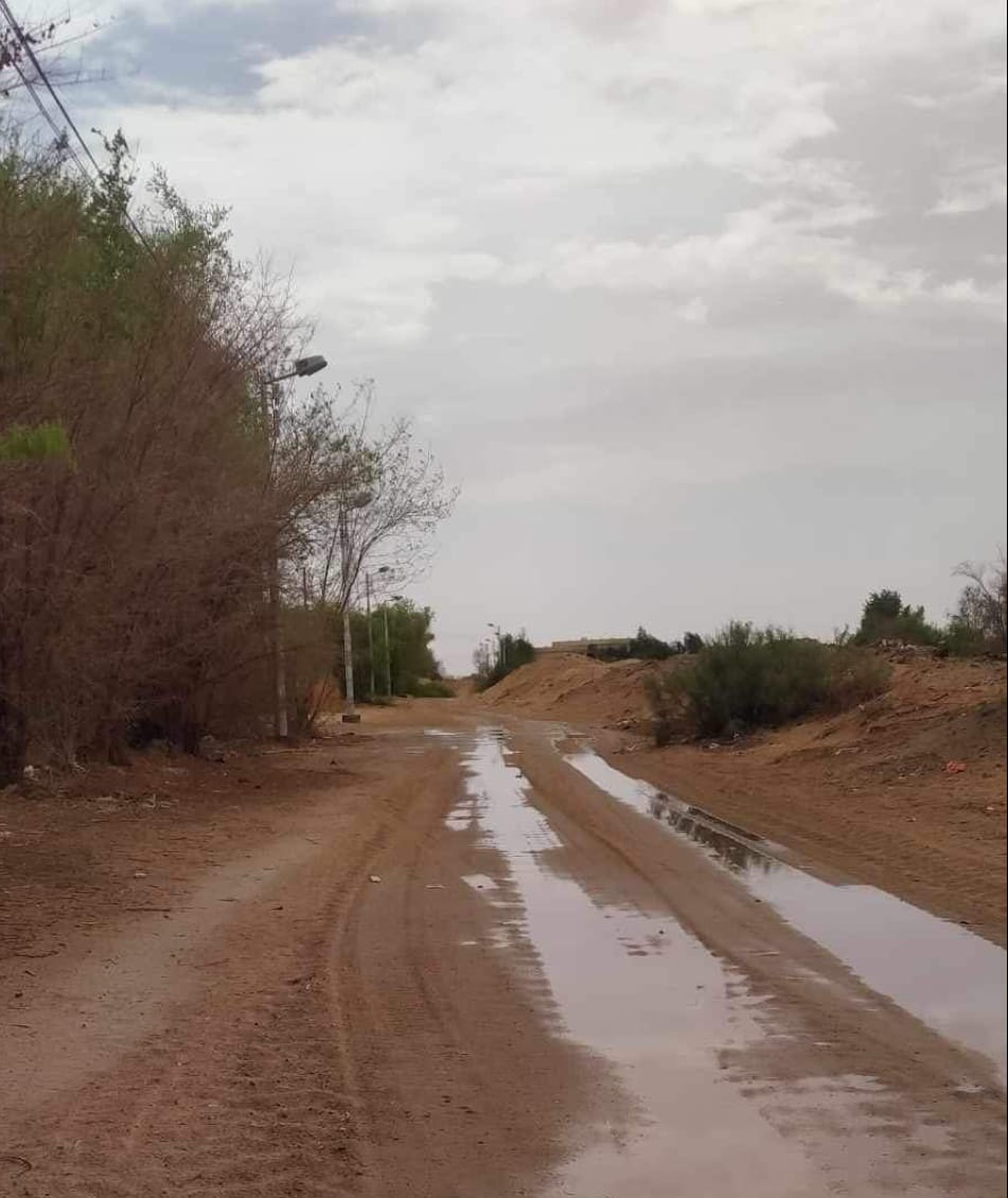 وسبق هطول الأمطار الغزيرة في منطقة شرق العوينات بالوادي الجديد، على مدار اليومين الماضيين، هبوب رياح شديدة محملة بأترية، وبعدها بدأت تتساقط الأمطار بشكل كثيف جدًا.