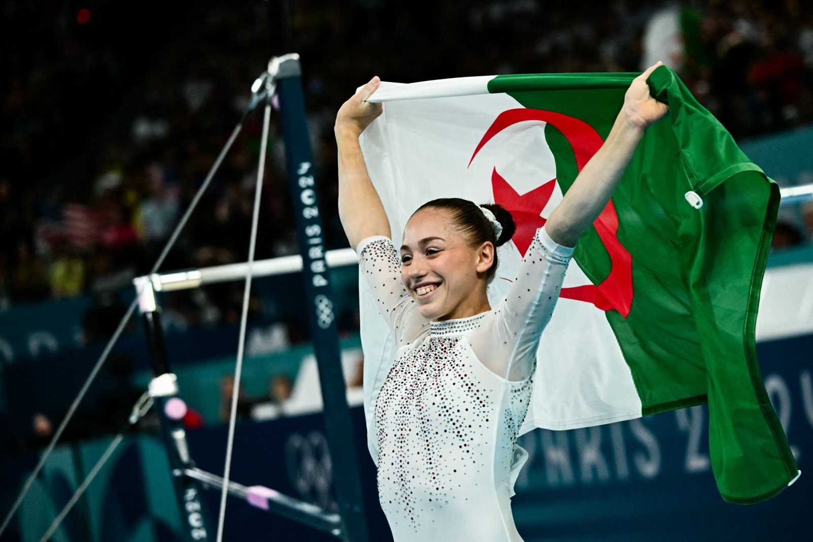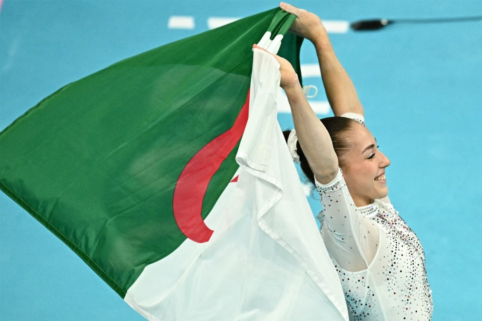 أولمبياد باريس 2024، حرصت الجزائرية كايليا نمور على الاحتفال برفع علم بلادها بعد حصولها على الميدالية الذهبية في أولمبياد باريس 2024 ضمن منافسات الجمباز.