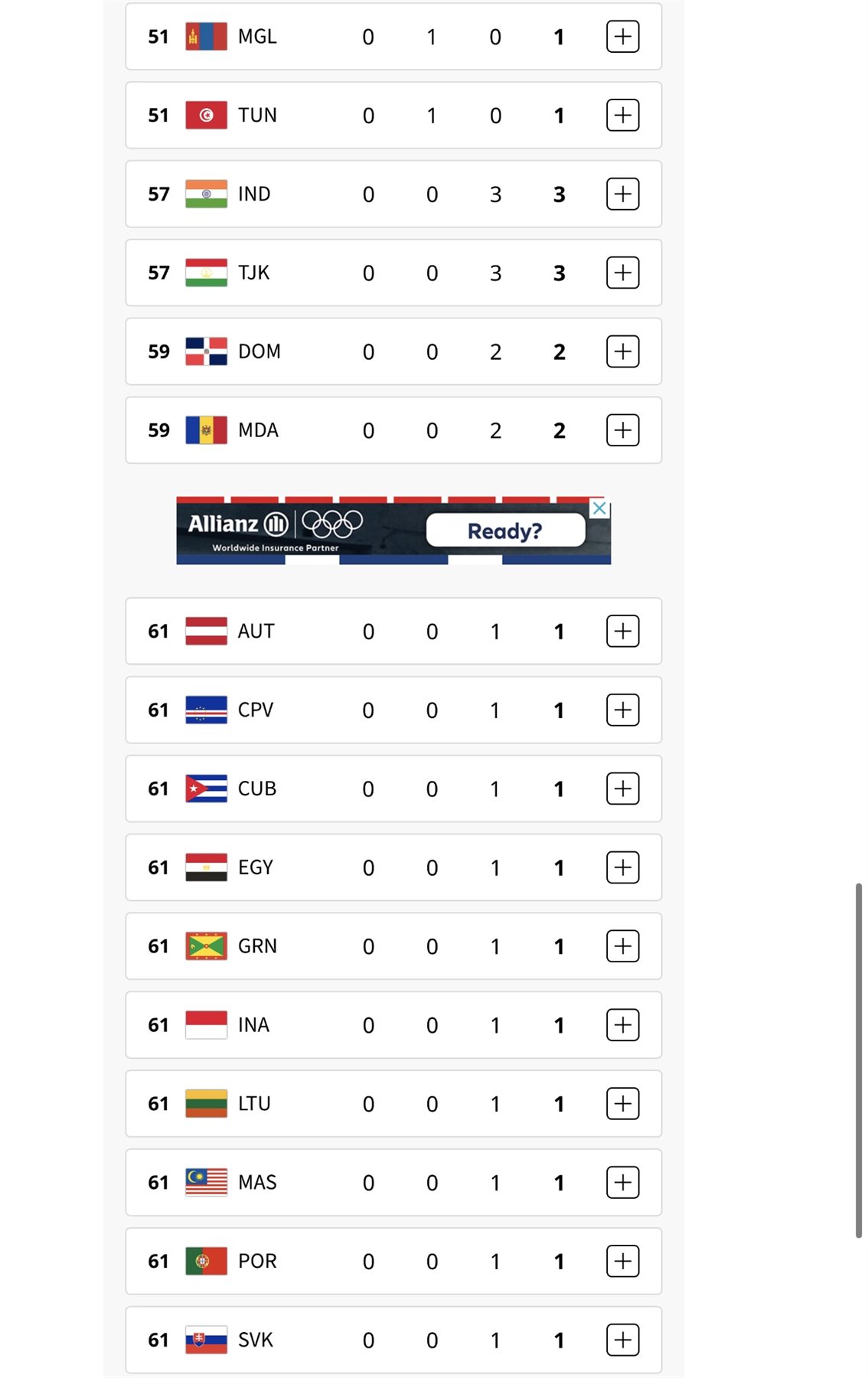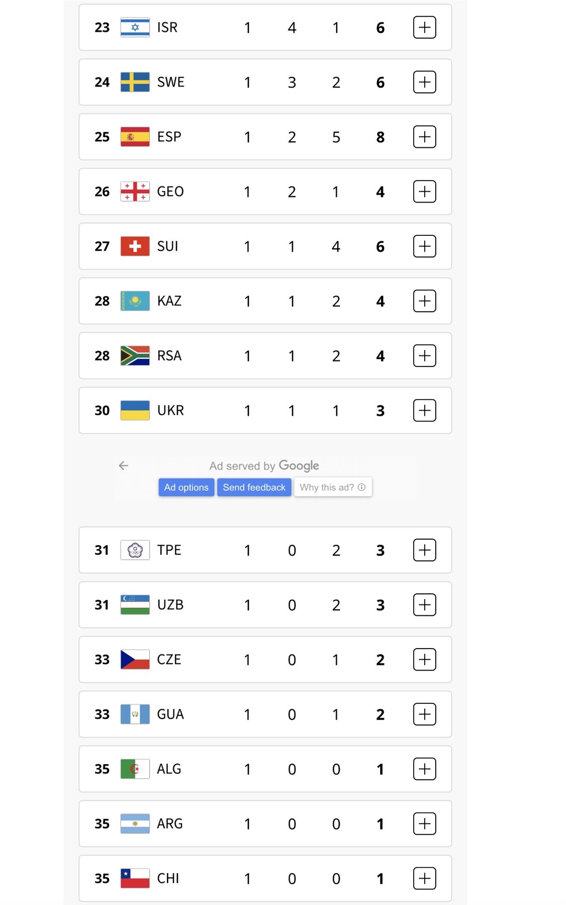 جدول ترتيب ميداليات الألعاب الأولمبية باريس 2024