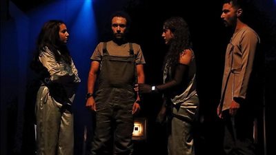 العرض بطولة عبد الباري سعد، أمير عبد الواحد، محمد شحاتة، نسمة عادل، سما حسن، العرض عن نص “مطعم القردة الحية” لجونكور ديلمان، دراماتورج أحمد عصام، إخراج محمد فاروق.