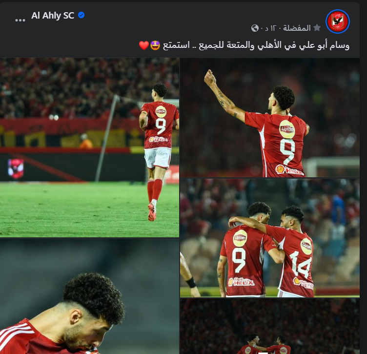 ونشرت صفحة الأهلي مجموعة من الصور لاحتفال وسام أبو علي بعد تسجيله هدفين في الشوط الأول وكتبت: وسام أبو علي في الأهلي والمتعة للجميع، استمتع.