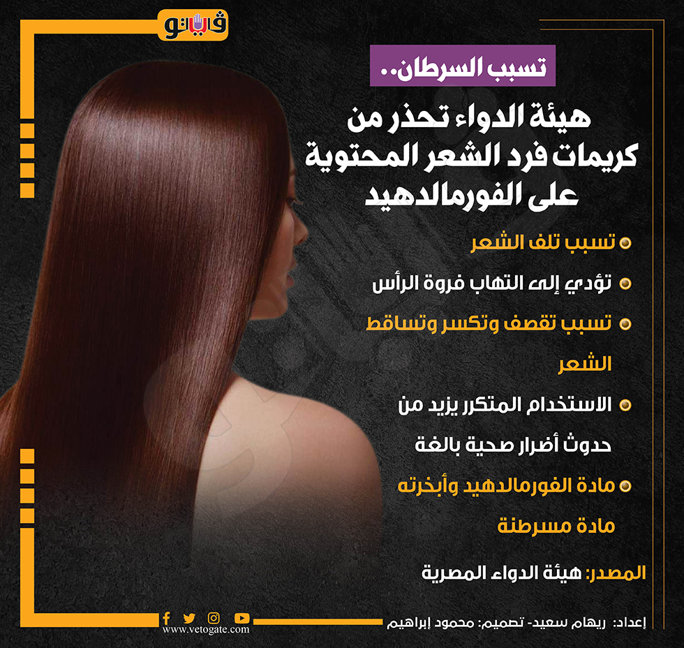 تسبب السرطان.. هيئة الدواء تحذر من كريمات فرد الشعر المحتوية على الفورمالدهيد (إنفوجراف) الثلاثاء 06/أغسطس/2024 - 10:00 ص 8/6/2024 10:00:11 AM كريمات فرد الشعر، فيتو ريهام سعيد شارك طباعة 18 حجم الخط شارك طباعة الدواء المصرية هيئة الدواء المصرية تساقط الشعر كريمات فرد الشعر فروة الراس مادة مسرطنة فرد الشعر هيئة الدواء تلف الشعر السرطان الدواء المصري