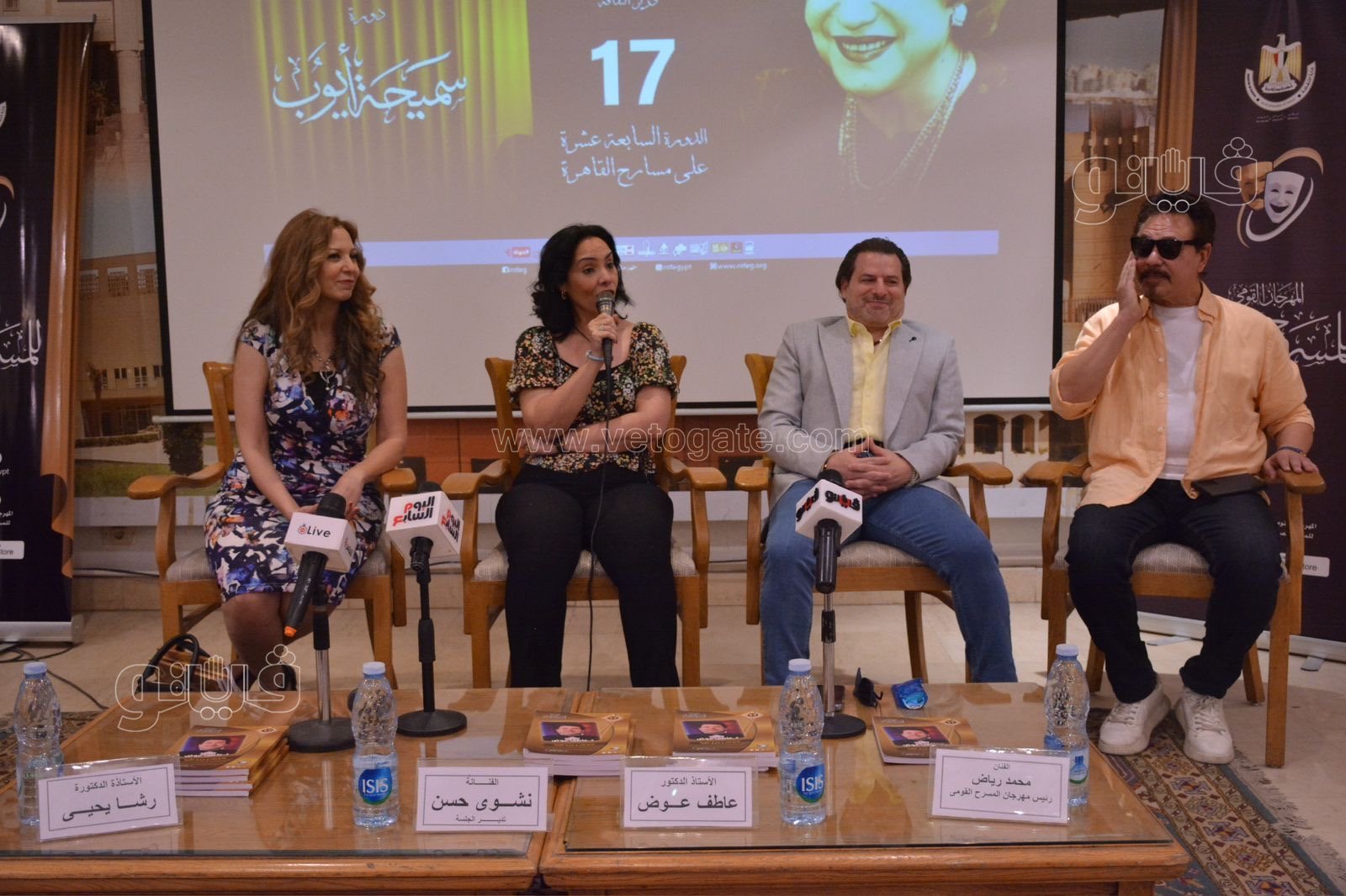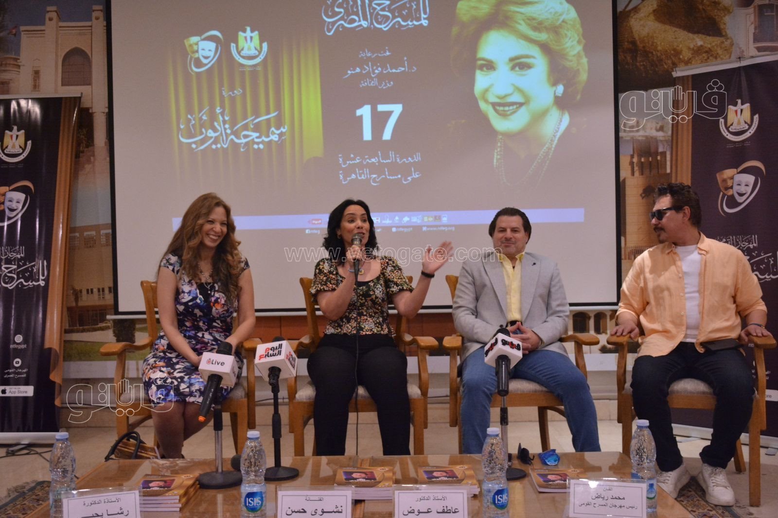 وحضر الندوة الفنان محمد رياض رئيس المهرجان، والدكتورة رشا يحيى مؤلفة إصدار المهرجان عن مسيرة الدكتور عاطف عوض، وأدارت الندوة الفنانة نشوى حسن.