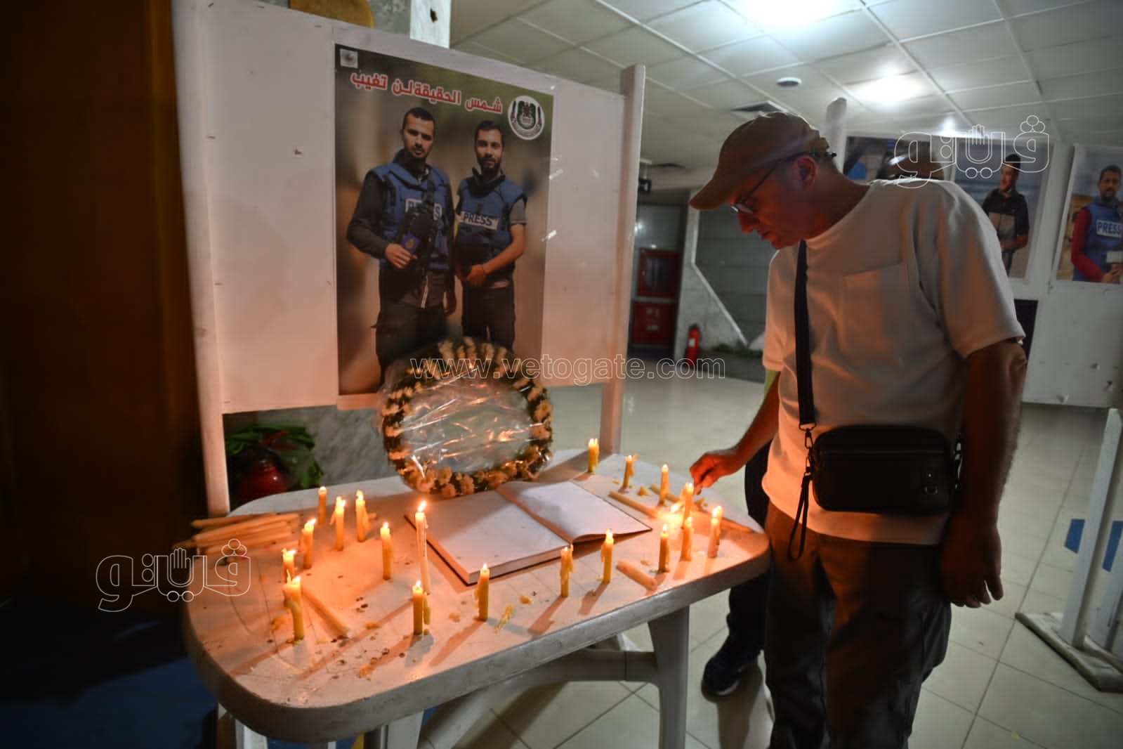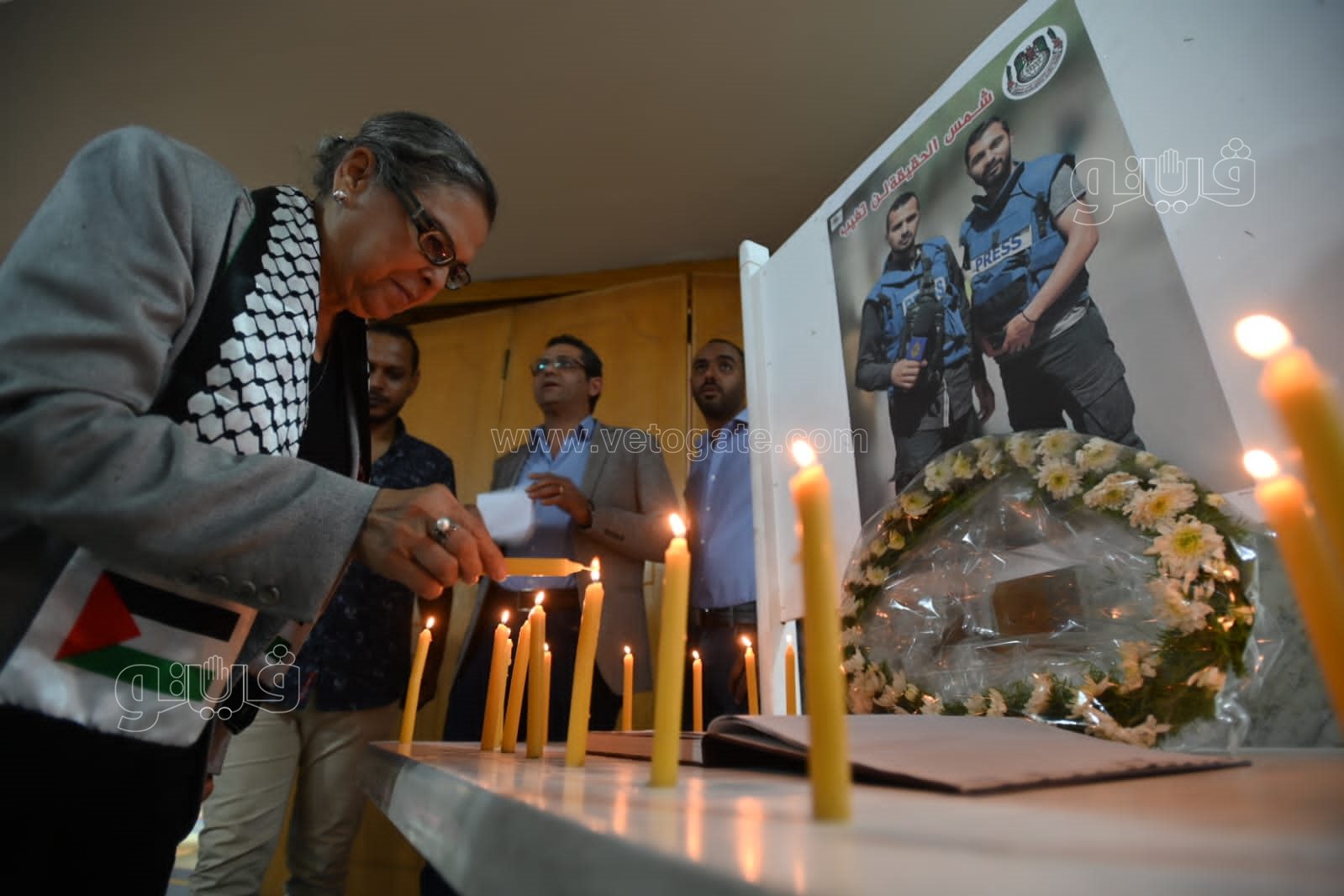 وفقة بالشموع على أرواح شهداء الصحافة الفلسطينية بنقابة الصحفيين (صور)