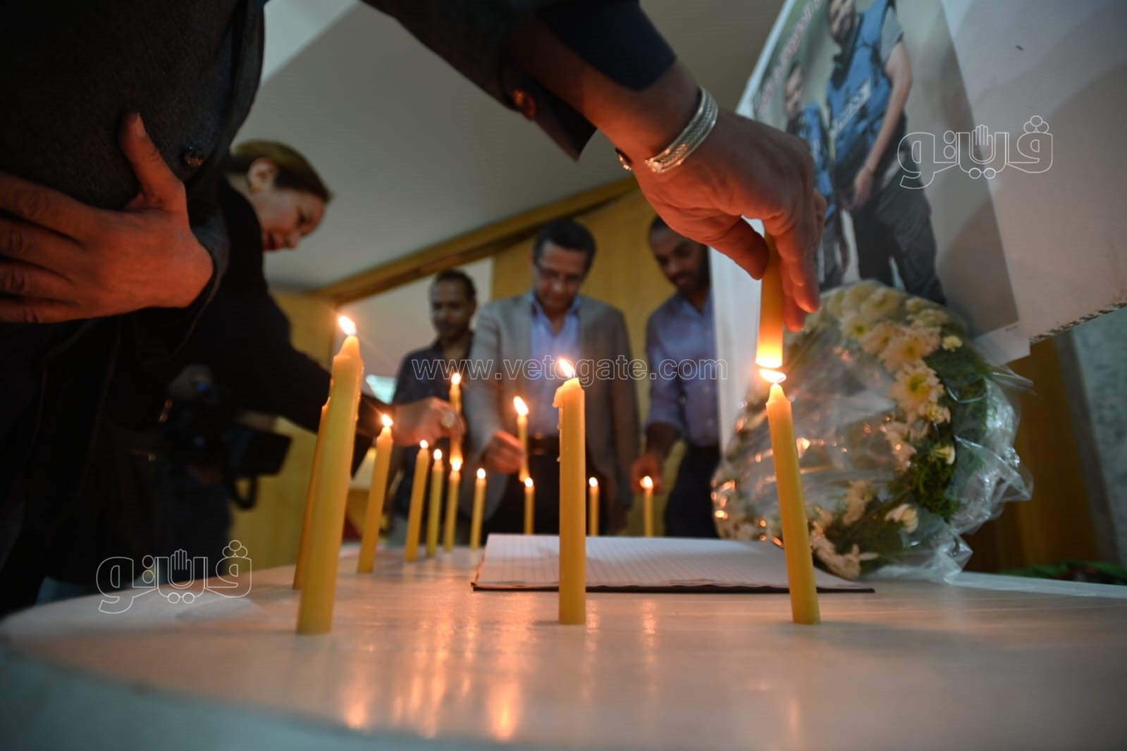نظمت نقابة الصحفيين، مساء اليوم الإثنين، وقفة بالشموع، وقراءة الفاتحة أمام صور شهداء الصحافة الفلسطينية، وتدوين كلمات العزاء فى دفتر عزاء الشهداء، ضمن فعاليات اليوم التضامني مع الصحفيين الفلسطينيين بالتزامن مع ذكرى يوم الأسرى.