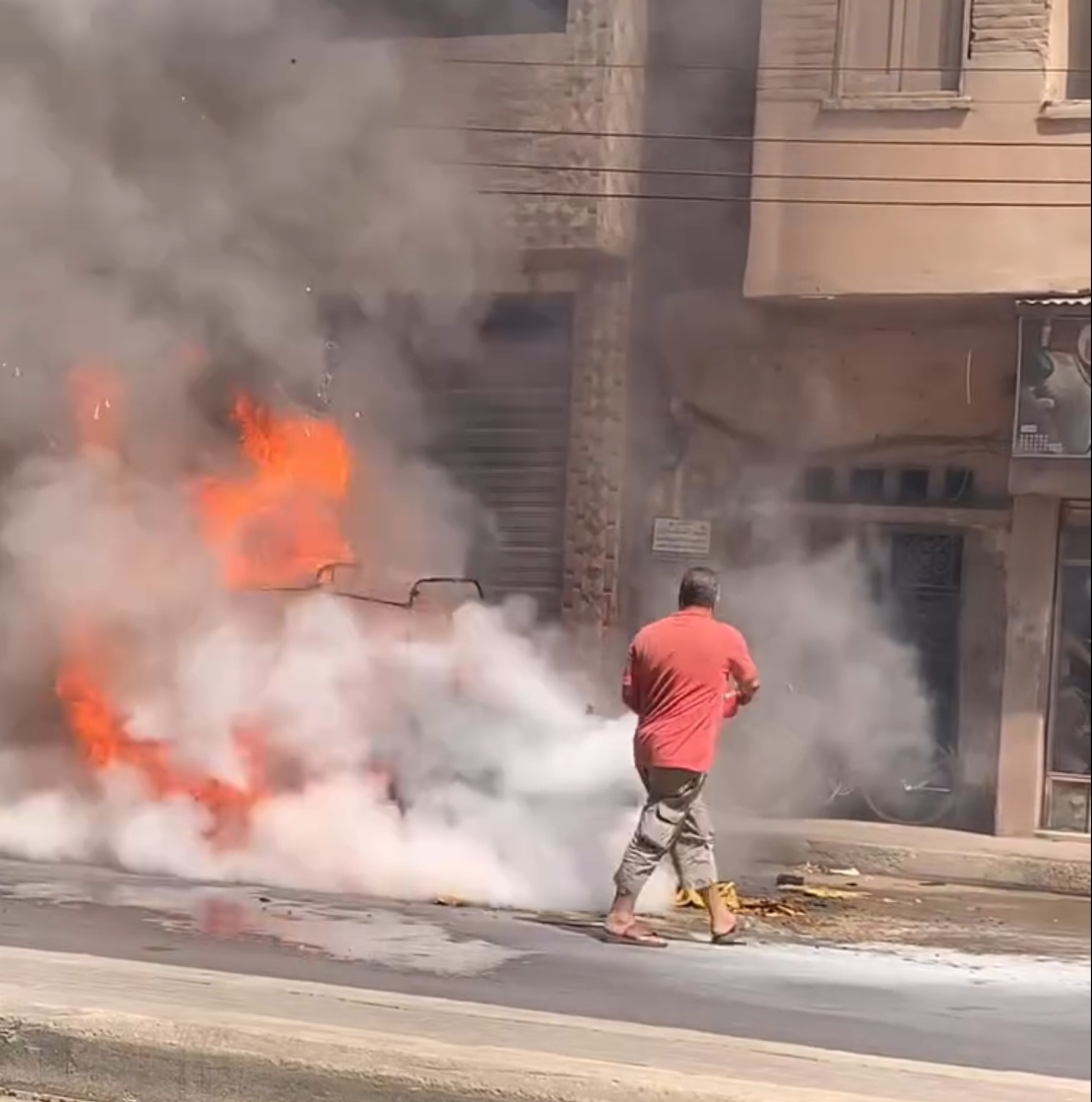 اشتعلت النيران في "توك توك" متوقف أمام أحد المحلات بمدينة المحلة الكبرى في محافظة الغربية.