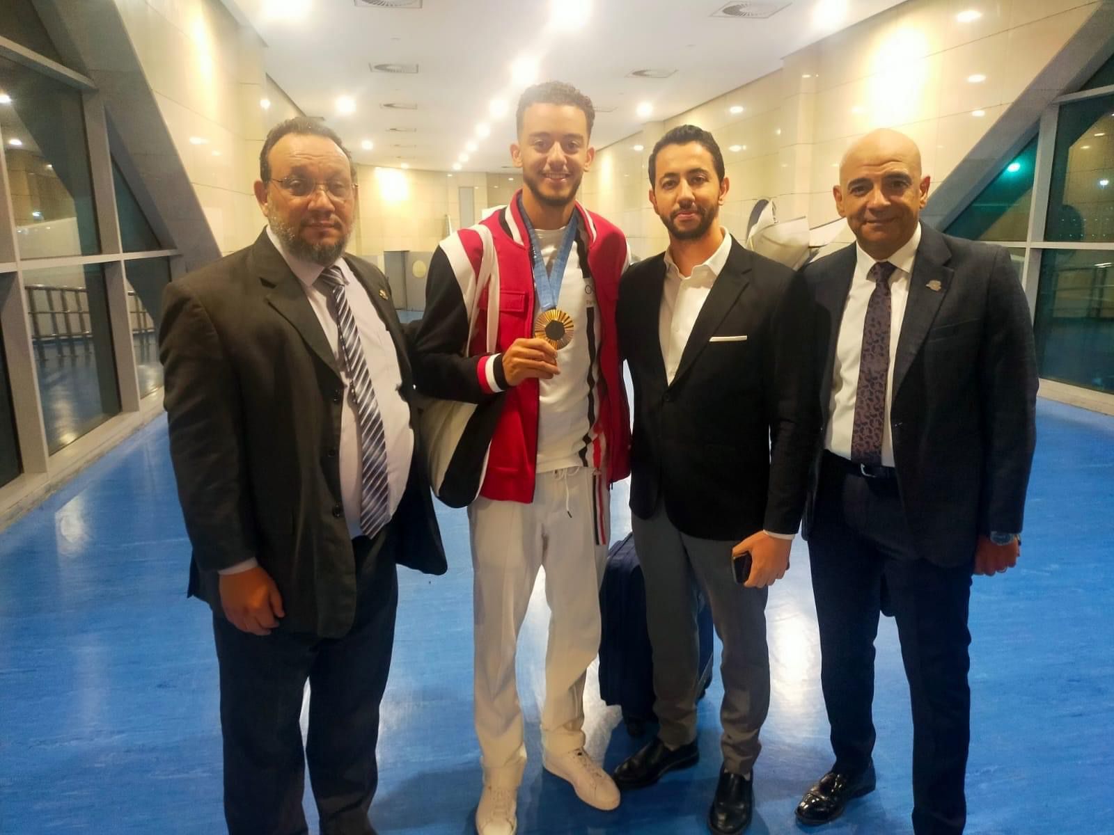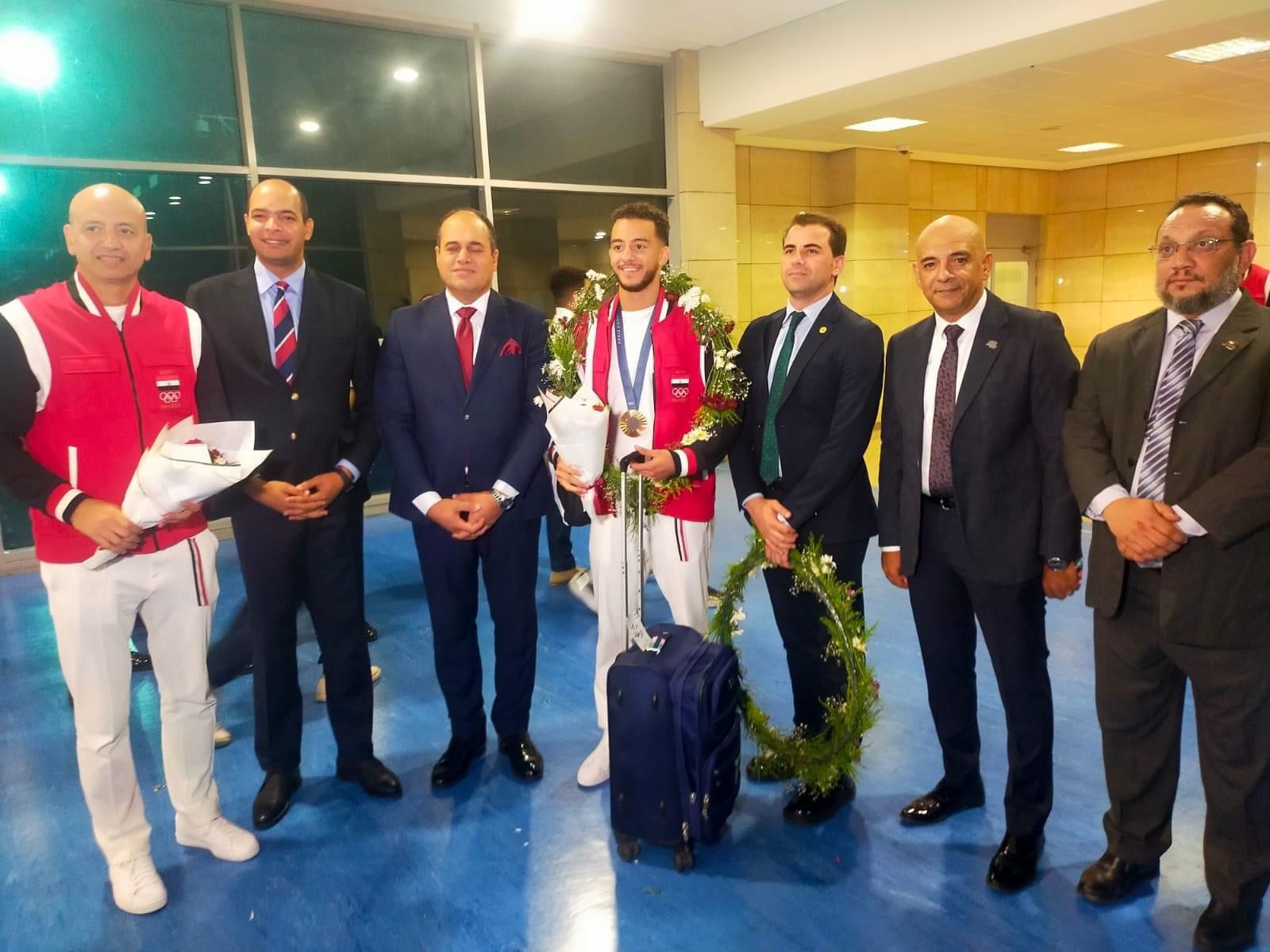 وصل إلى مطار القاهرة الدولي، البطل المصري الأولمبي محمد السيد، صاحب البرونزية الوحيدة لمصر في أولمبياد باريس 2024، ضمن منافسات سلاح سيف المبارزة.
