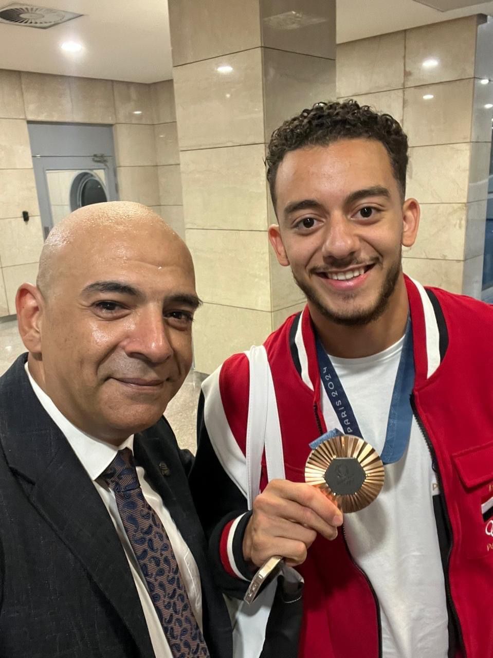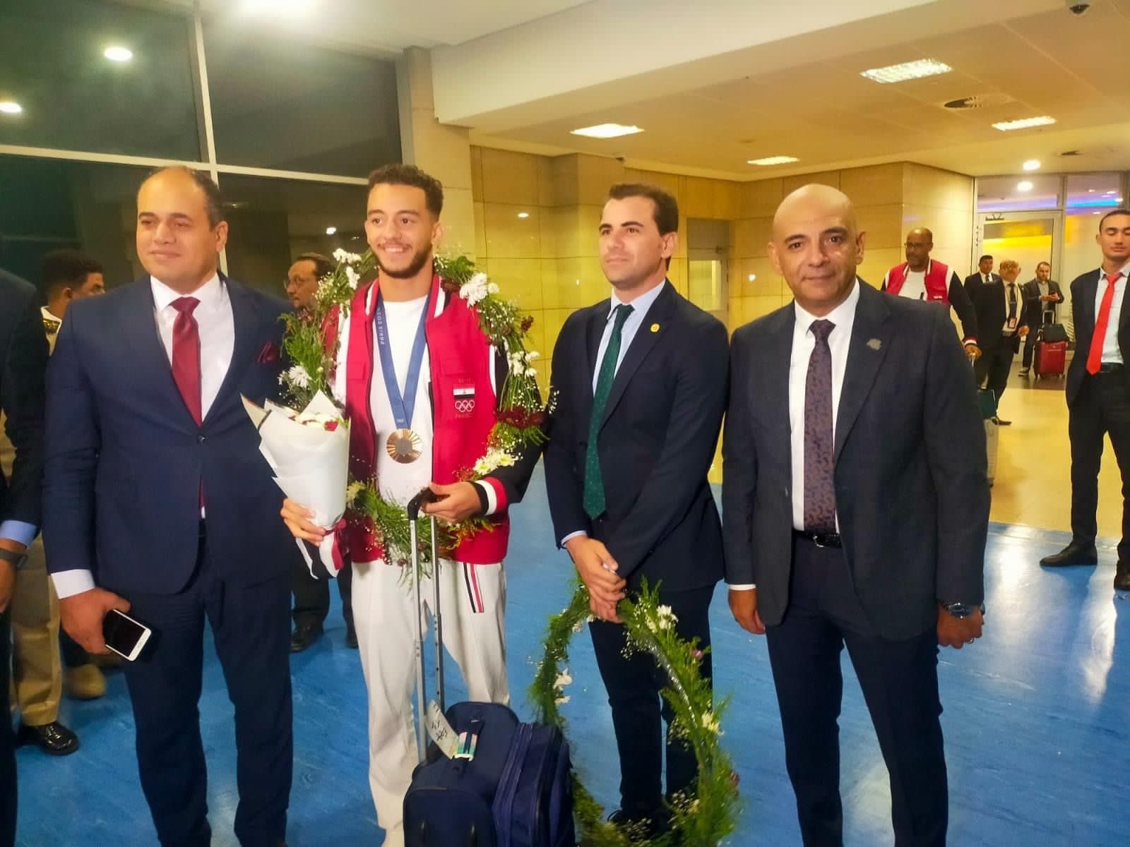 وحرص مطار القاهرة الدولي، على استقبال البطل المصري الأولمبي محمد السيد، صاحب البرونزية الوحيدة لمصر في أولمبياد باريس 2024، ضمن منافسات سلاح سيف المبارزة، بالورود على متن الطائرة المصرية القادمة من باريس ويتم إنهاء اجراءات وصوله من خلال مبنى الركاب 3 بالمطار.