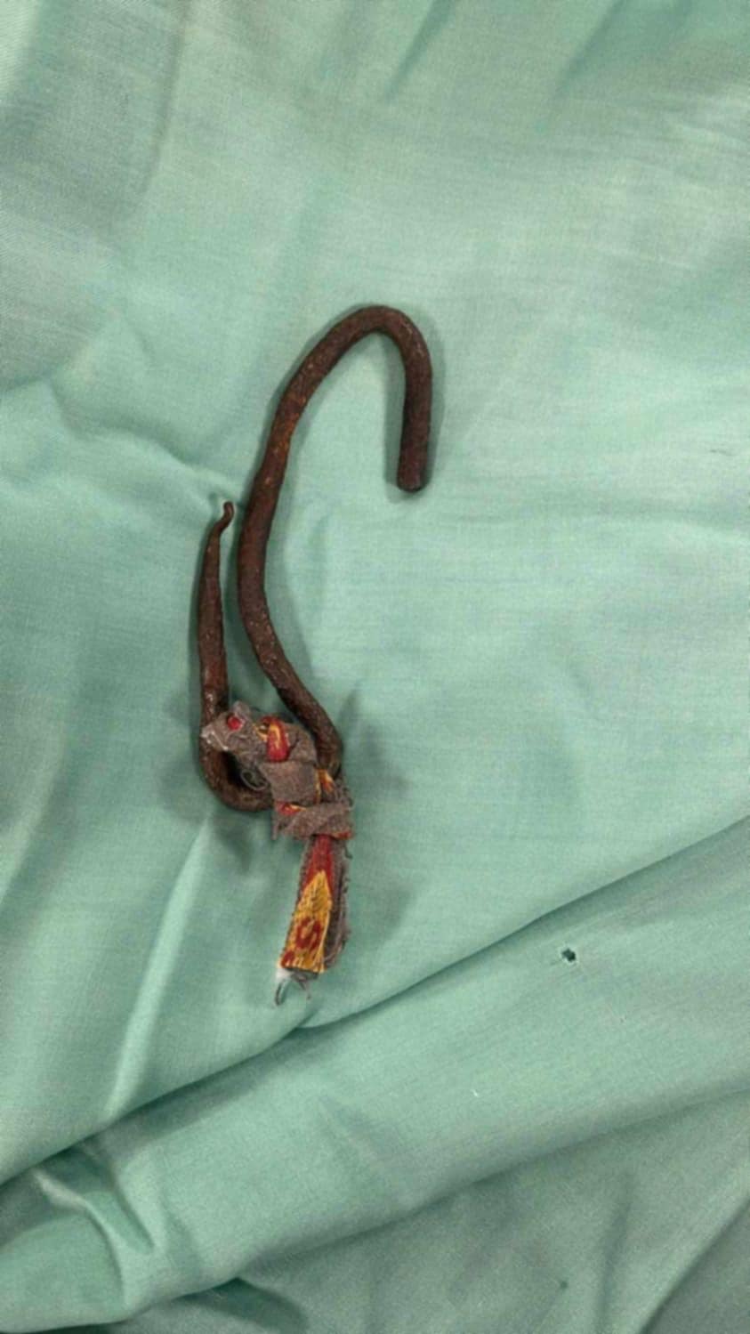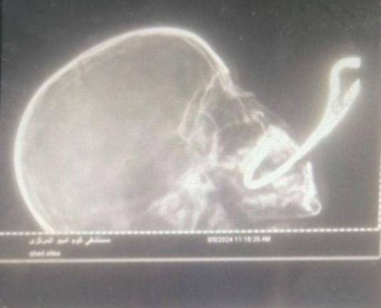 وقال الدكتور أحمد قناوي رئيس قسم جراحة التجميل إن سيخا حديدا صدئا ملتويا تعلق بسقف الحلق في قاعدة الجمجمة وأجريت العملية من فريق طبي متميز.