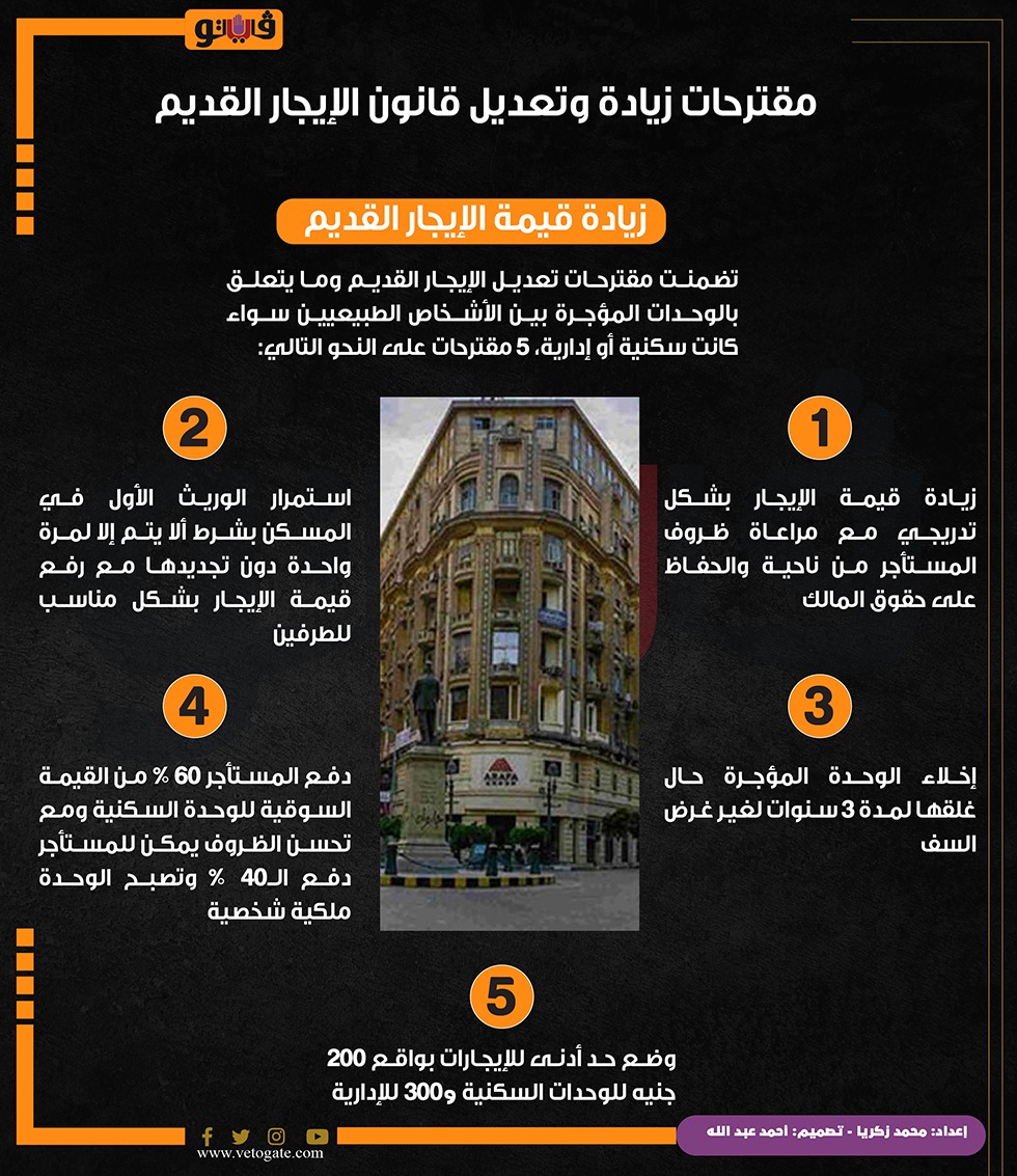 مقترحات زيادة وتعديل قانون الإيجار القديم (إنفوجراف) الأحد 25/أغسطس/2024 - 11:35 ص 8/25/2024 11:35:36 AM الإيجار القديم، فيتو محمد زكريا شارك طباعة 18 حجم الخط شارك طباعة الإيجار القديم اخلاء الوحدة القيمة السوقية تعديل قانون الايجار القديم زيادة قيمة الإيجار القديم قانون الإيجار القديم قيمة الإيجار القديم مقترحات تعديل الإيجار القديم قانون الإيجار