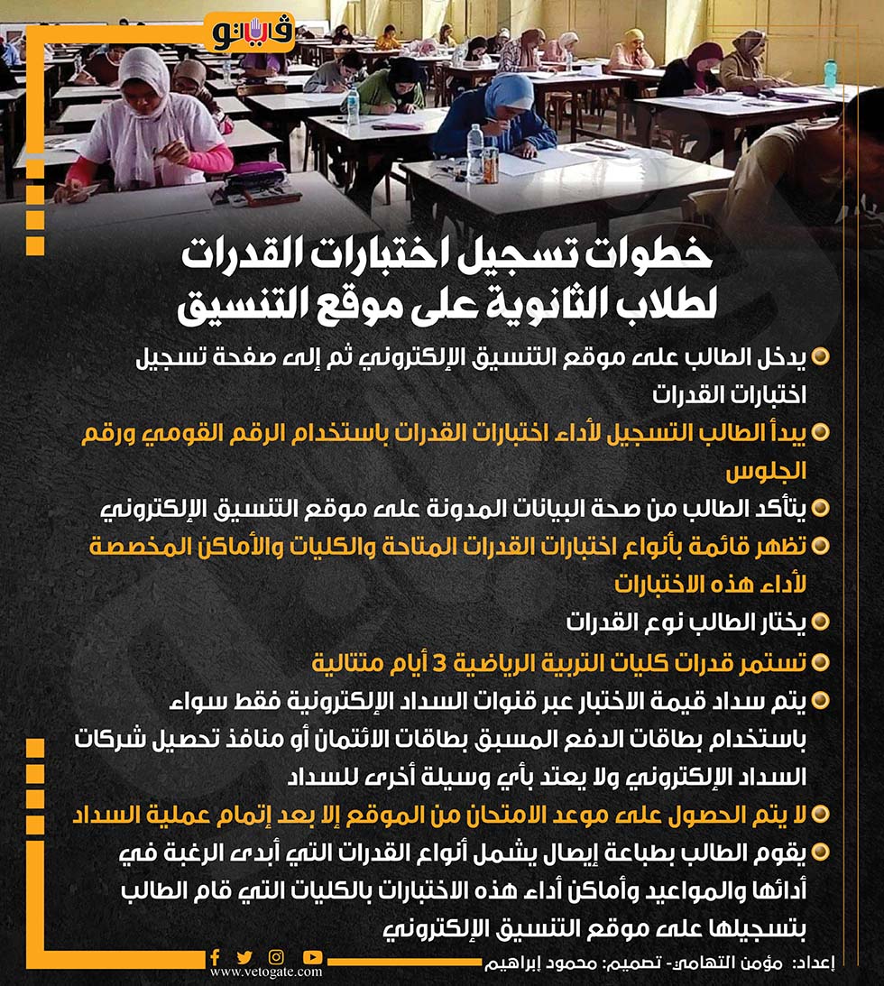 تنسيق الجامعات، 67 ألف طالب يسجلون في اختبارات القدرات للثانوية العامة