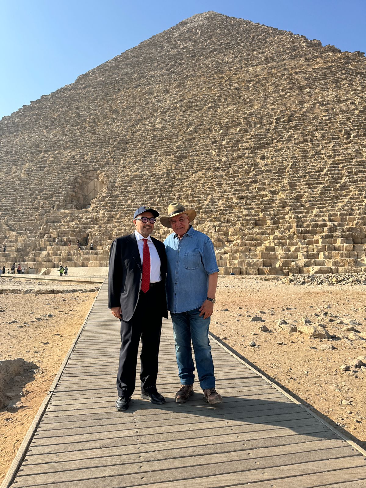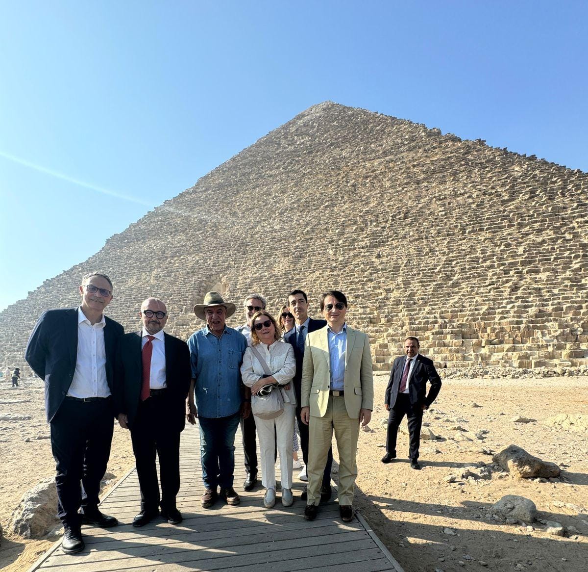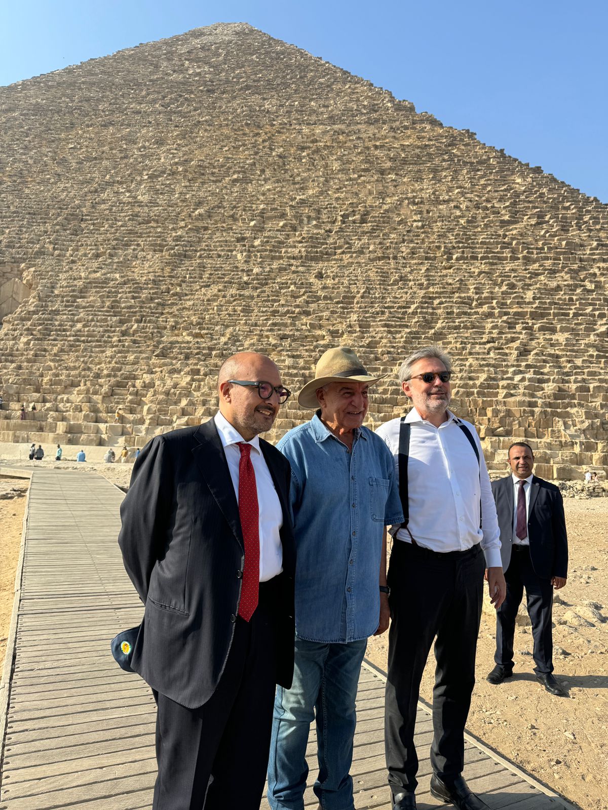 اصطحب عالم الآثار المصرية الدكتور زاهي حواس، جينارو سانجيوليانو وزير الثقافة والآثار بدولة إيطاليا، والسفير ميكيلي كواروني سفير دولة إيطاليا بالقاهرة، والوفد المرافق لهما، لزيارة أهرامات الجيزة وأبو الهول.
