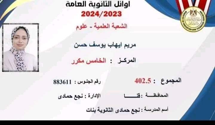 وقالت مريم: "الله لا يضيع أجر من أحسن عملا، ولم يضيع مجهودي. كنت أعمل بجد منذ بداية العام الدراسي، وهذا الإنجاز هو نتيجة لجهدي المستمر".