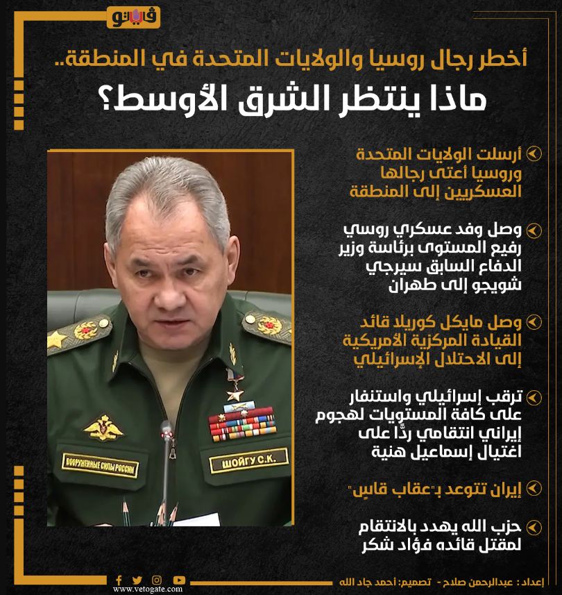 وتسربت الأنباء حول دور الروسي بوتين المحتمل فى ضبط إيقاع المعركة، عقب وزير الدفاع السابق سيرجي شويجو، أمس الاثنين، إلى طهران وعقد اجتماعات مع كبار المسؤولين الإيرانيين.