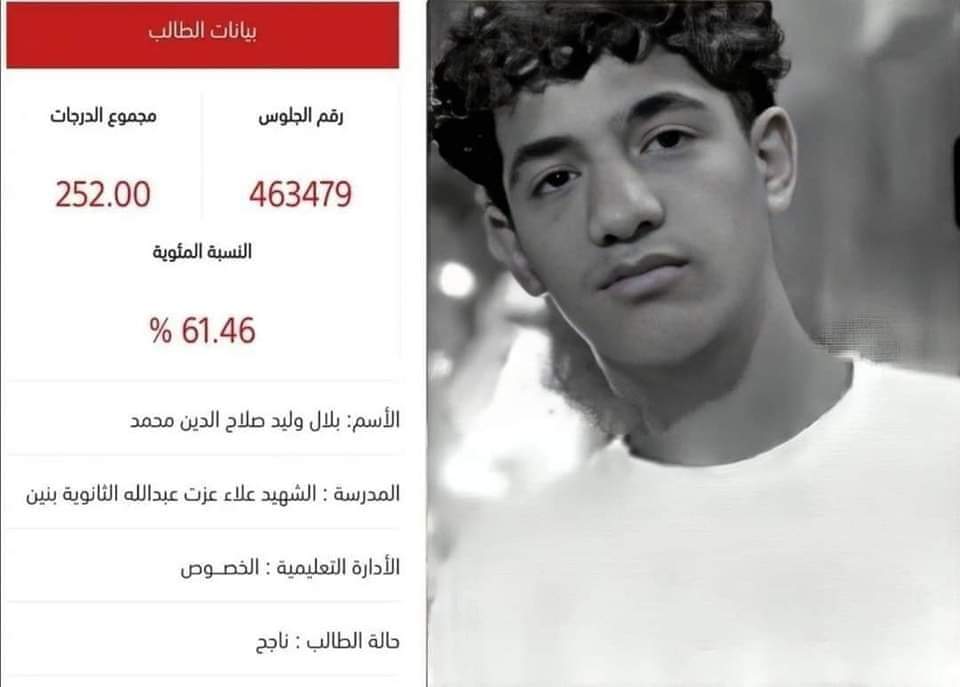 نتيجة الثانوية العامة، رعب وفزع نتيجة شهادة الثانوية العامة دفعت بما يقرب من 5 طلاب من التخلص من حياته خوفًا من أسرهم، قفزًا من أعلى مساكنهم ومن بين هؤلاء بلال وليد صلاح الطالب الذي ألقى بنفسه من الطابق السادس من مسكنه بمنطقة الخصوص التابعة لمحافظة القليوبية قبل ظهور النتيجة خوفًا من والده.