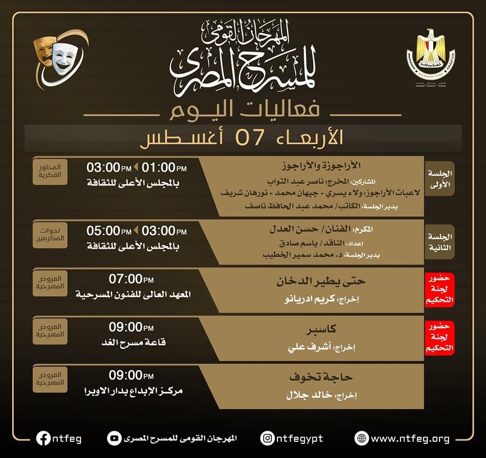 تعرف على فعاليات اليوم الأربعاء بالمهرجان القومي للمسرح