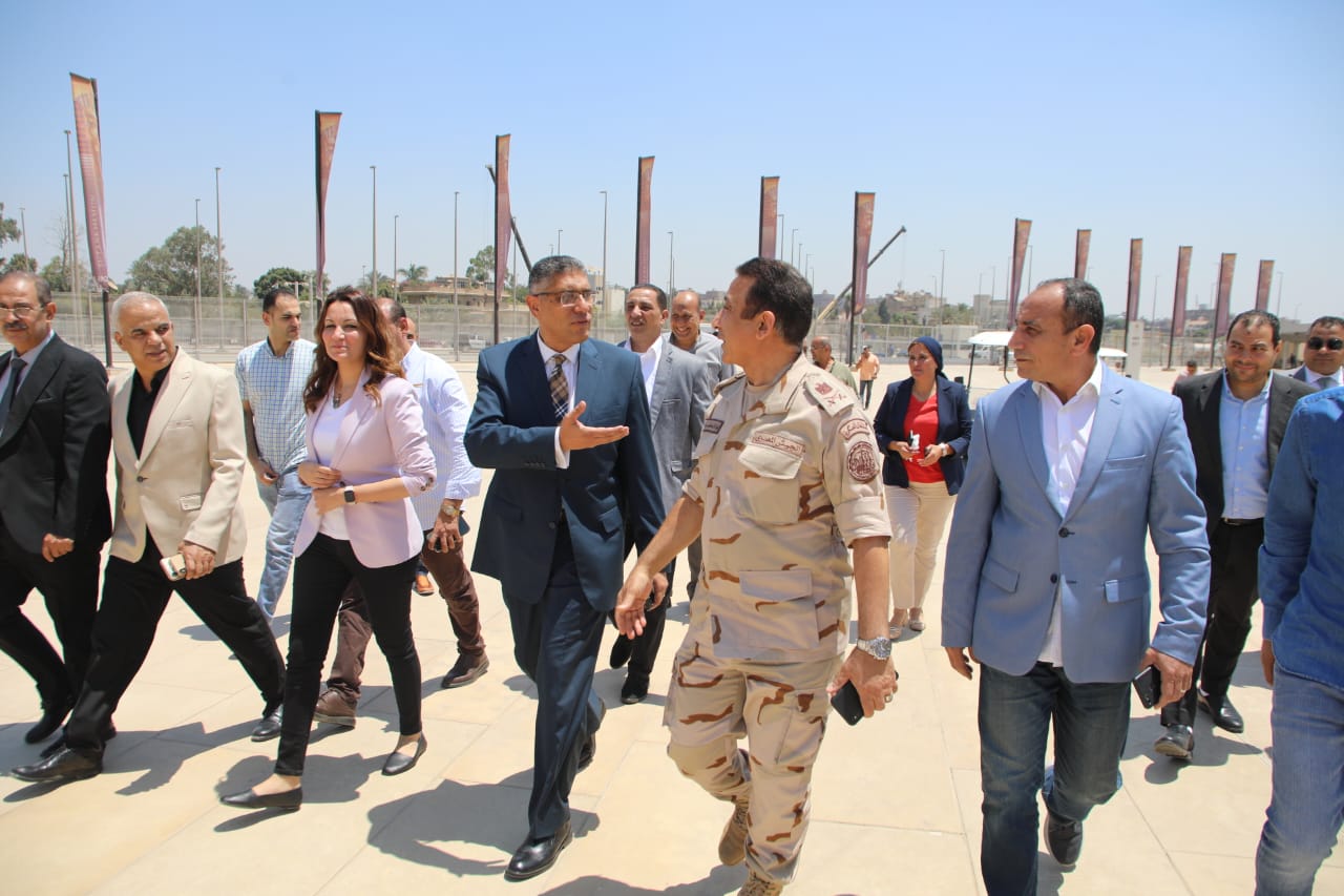 رافق محافظ الجيزة خلال جولته هند عبد الحليم نائب المحافظ واللواء شاكر يونس السكرتير العام والدكتور عيسى زيدان المسئول عن نقل وتغليف الآثار وطه عبد الصادق رئيس حي الهرم وعزة وهدان مدير إدارة السياحة.