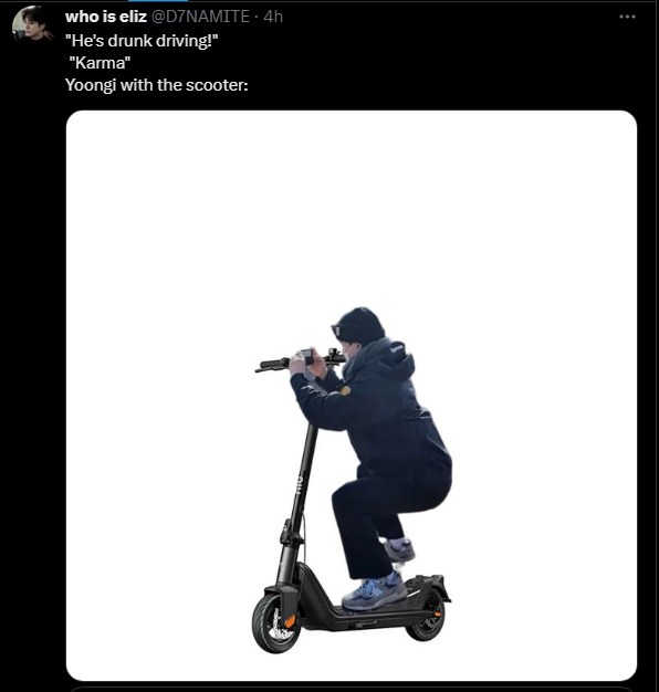 وتسبب حادث سكوتر SUGA الكهربائي في فتح نقاش كبير على مواقع التواصل الاجتماعي سواء الكورية أو العالمية، فبينما اتجه البعض إلى ألقاء النكات والتعليق على مدي سخافة الموقف، راي البعض الاخر أنها قضية كبيرة وقد تتسبب في ضرر حقيقي أن لم يفقد نجم الكيبوب العالمي وعيه أو يسقط فهو لم يعرض نفسه فقط للخطر وإنما حياة من حوله كذلك.
