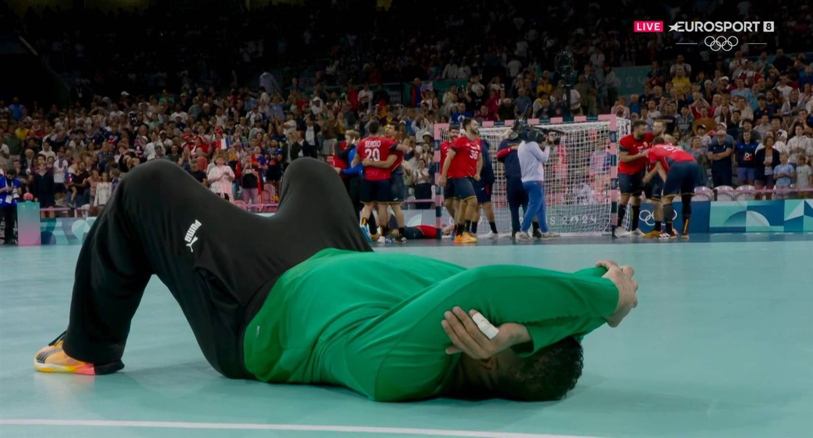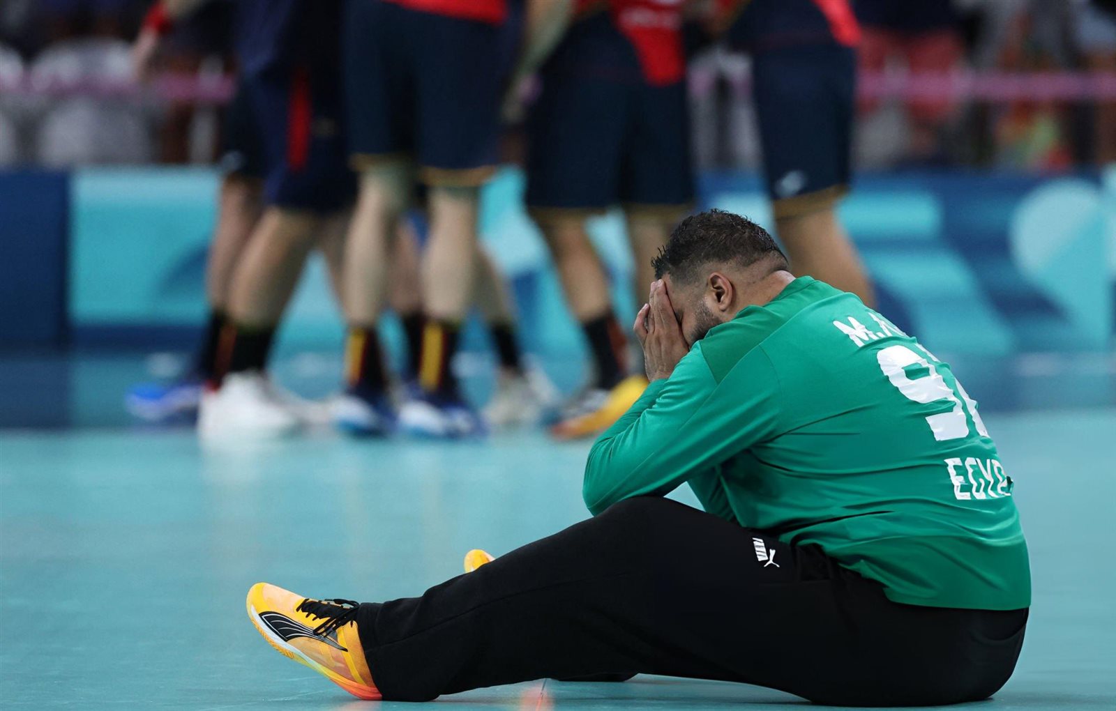وانهار محمد علي، حارس مرمى منتخب مصر لكرة اليد، من البكاء بعد الخسارة أمام إسبانيا..