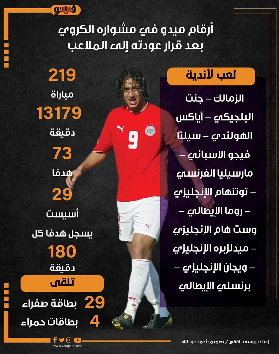 أرقام ميدو في مشواره الكروي بعد قرار عودته إلى الملاعب (إنفوجراف) الأربعاء 07/أغسطس/2024 - 10:40 م 8/7/2024 10:40:36 PM أرقام ميدو في مشواره الكروي بعد قرار عودته إلى الملاعب يوسف الفقي شارك طباعة 18 حجم الخط شارك طباعة ميدو عودة ميدو للملاعب أحمد حسام ميدو ميدو لاعب الزمالك أرقام ميدو في كرة القدم