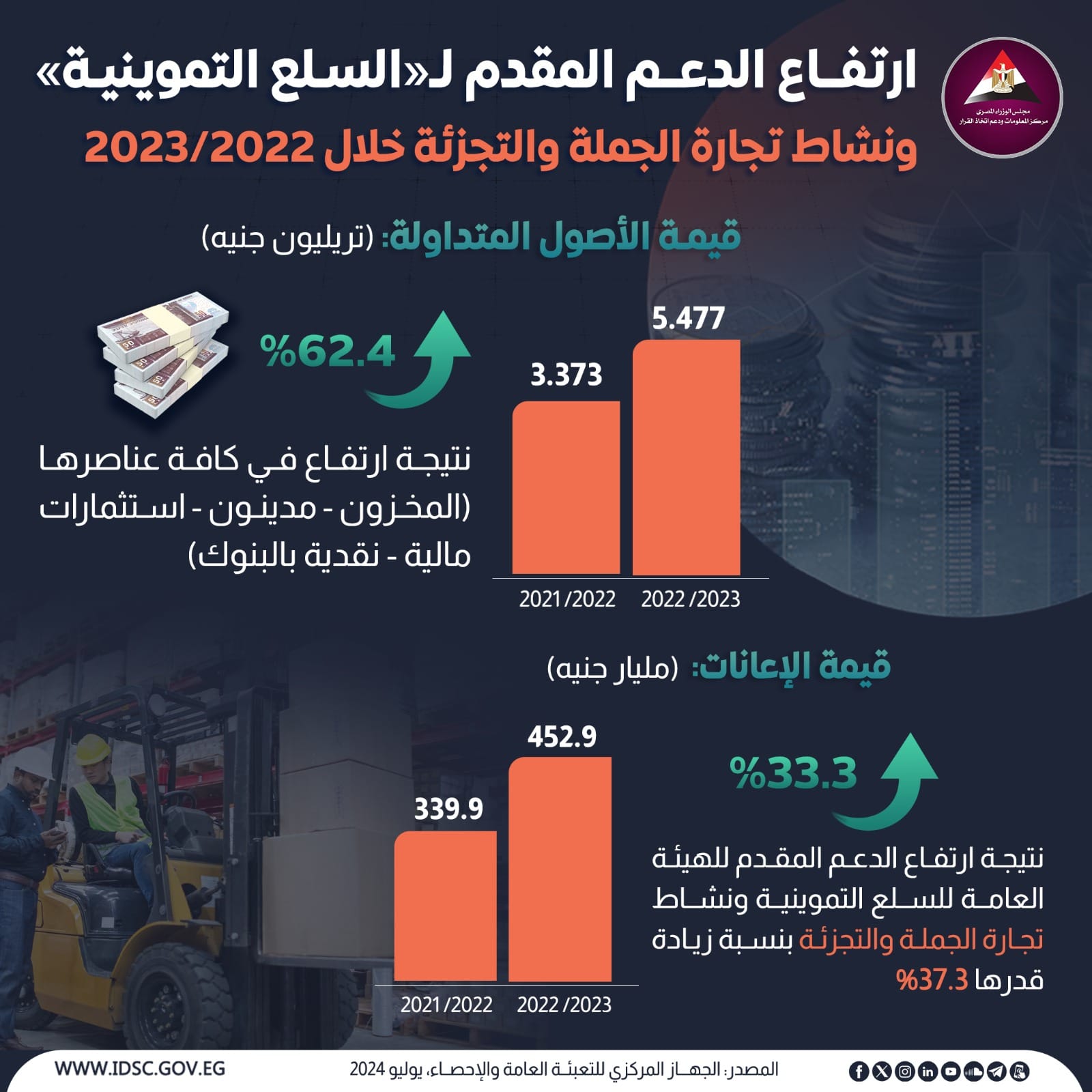 سلط مركز المعلومات ودعم اتخاذ القرار بمجلس الوزراء الضوء على زيادة قيمة رأس المال المدفوع للهيئات الاقتصادية خلال 2022-2023.