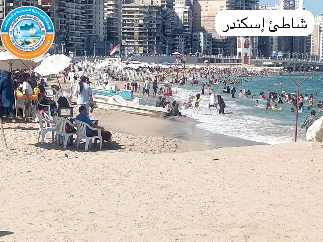 إقبال متوسط على شواطئ الإسكندرية ورفع الرايات الخضراء والصفراء