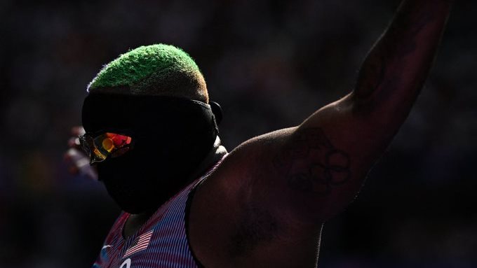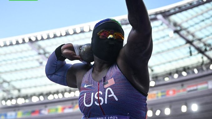 أولمبياد باريس، أثارت الأمريكية رافين ساوندرز حالة من الجدل خلال منافسات رمي الجلة والقرص في أولمبياد باريس 2024 بعد ظهورها بقناع يخفي وجهها تماما.