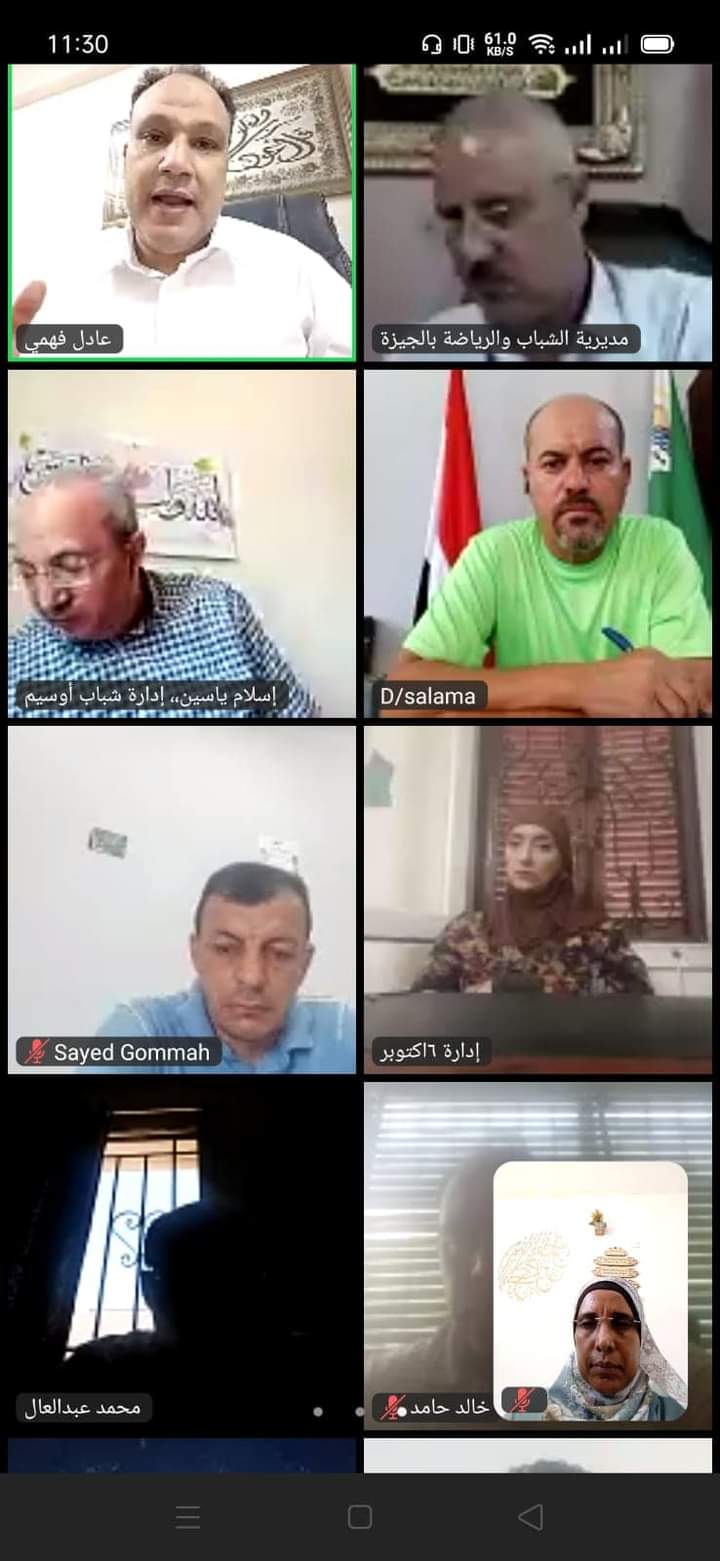 عقد الدكتور محمود الصبروط وكيل وزارة الشباب والرياضة بالجيزة، اجتماعا مع مديري الإدارات الفرعية اليوم الخميس، عبر تقنية الفيديو كونفرانس، بحضور عادل فهمي وكيل المديرية لشئون الشباب، وإيهاب فاوي وكيل المديرية لشئون الرياضة.