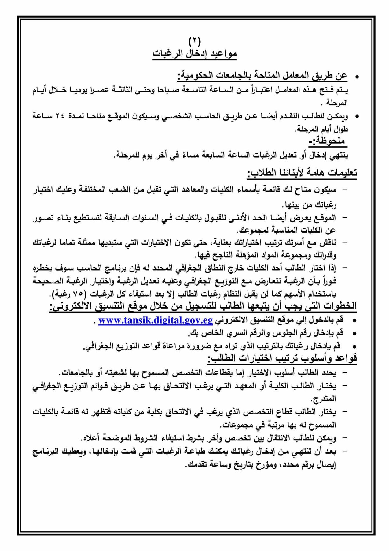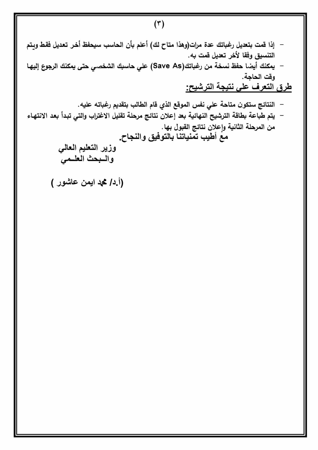 ضرورة الحفاظ على الرقم السري الخاص بتسجيل الرغبات، وعدم اطلاع أي شخص عليه.