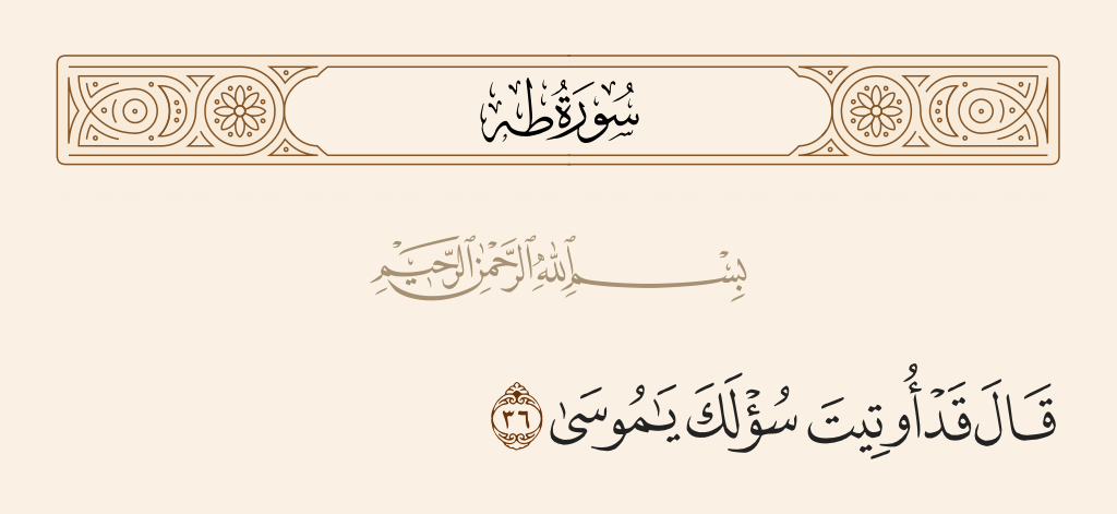 قال تعالى: «قالَ قَدْ أُوتِيتَ سُؤْلَكَ يا مُوسى (٣٦) وَلَقَدْ مَنَنَّا عَلَيْكَ مَرَّةً أُخْرى (٣٧)».