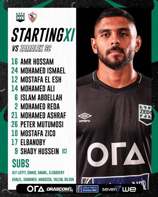 ويتواجد على مقاعد البدلاء، عمر عبد العزيز وأحمد مجدي وحسن أبو المعاطي ومحمد السيد ومحمد عاطف ومهاب ياسر وحازم أسامة وسامسون أكينيولا وناصر منسي.