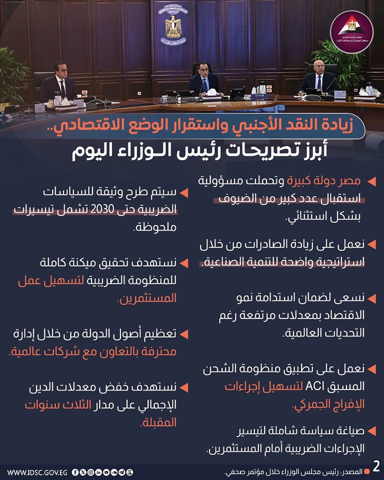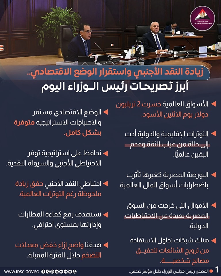 زيادة النقد الأجنبي واستقرار الوضع الاقتصادي، أبرز تصريحات رئيس الوزراء اليوم (إنفوجراف)