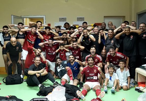 لاعبو الأهلي والجهاز الفني يحتفلون على طريقة مؤمن زكريا بعد التتويج بالدوري