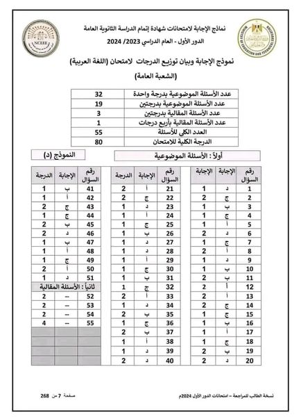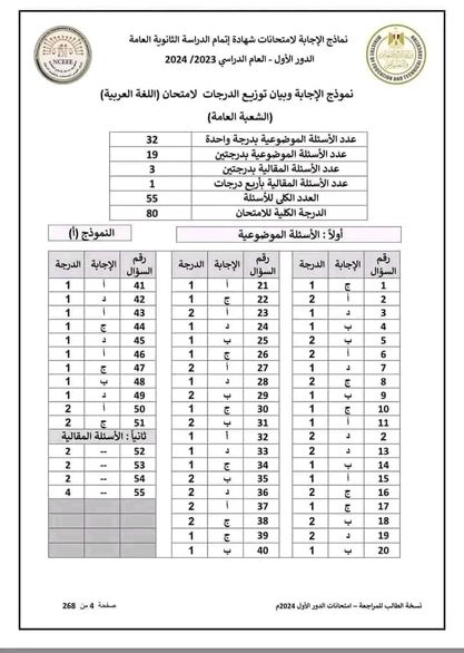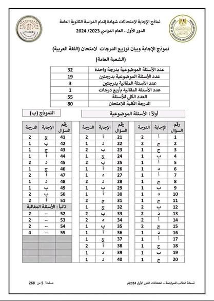 الثانوية العامة 2024، نموذج إجابة امتحان اللغة العربية الرسمي
