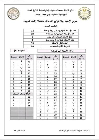 أسئلة وإجابات امتحانات الثانوية العامة 2024