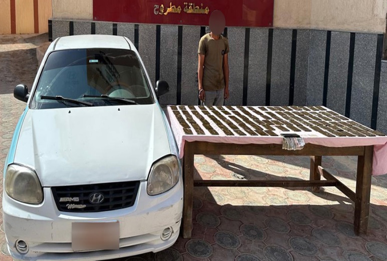 فى مطروح؛ تم ضبط (عنصرين إجراميين)، حال استقلالهما سيارتين ملاكى بدائرة قسم شرطة مطروح وبحوزتهما (60 كيلو جرام لمخدر الحشيش – طبنجة – عدد من الطلقات).