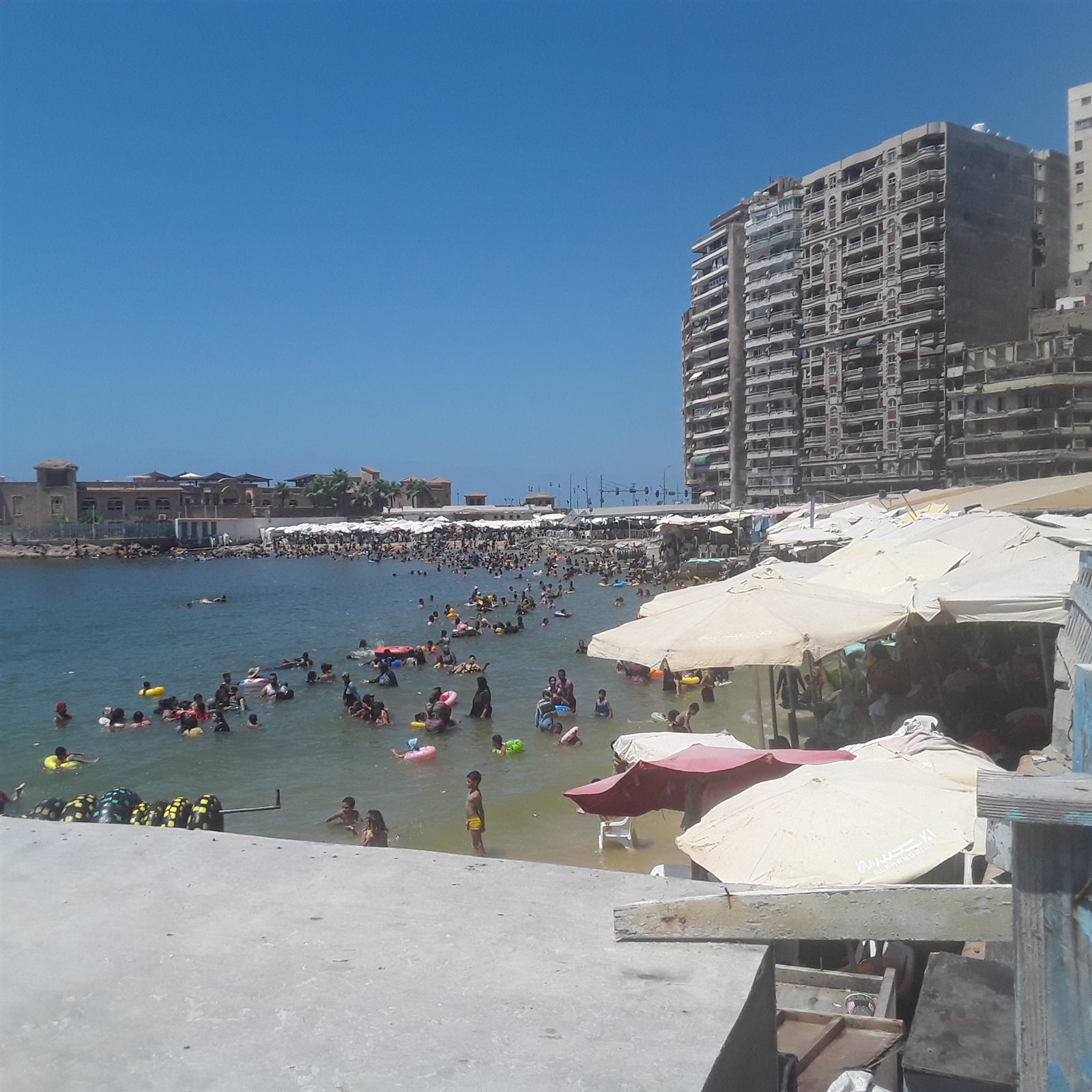 كاملة العدد، إقبال المصطافين على شواطئ الإسكندرية (بث مباشر)