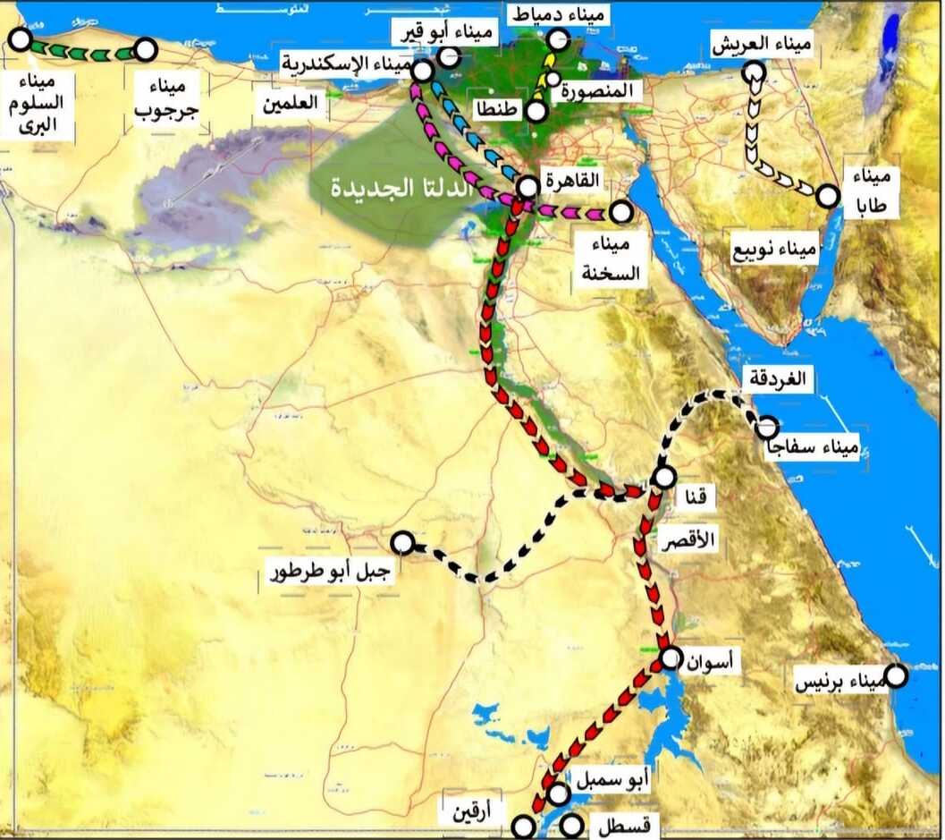 ربط شبكة القطار الكهربائي السريع وطريق الصعيد الصحراوي الغربي عن طريق مر القاهرة – أسوان – ابو سمبل