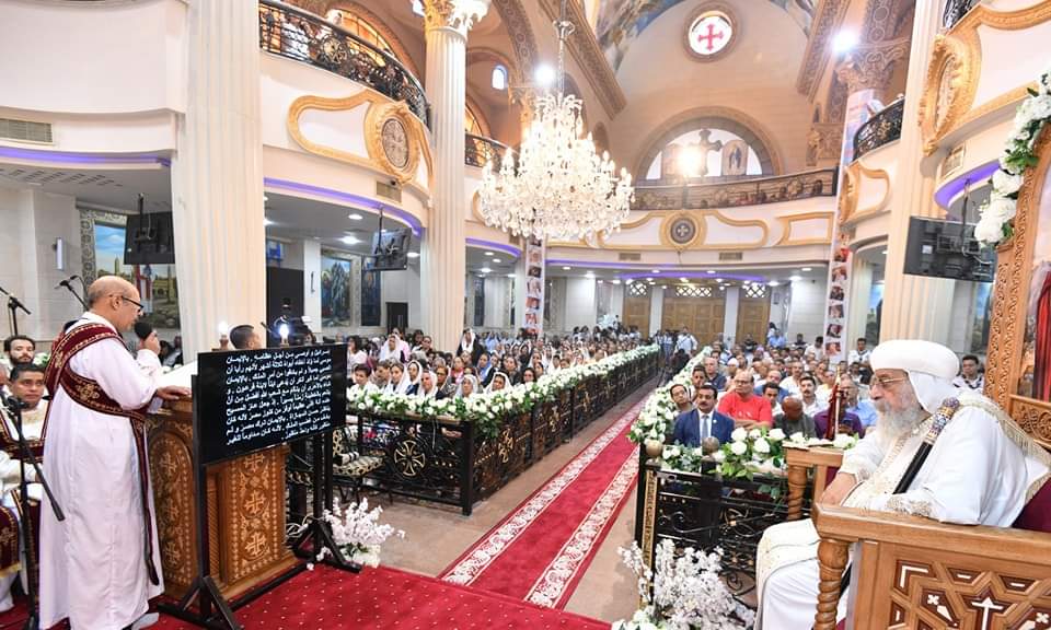 واستقبل كهنة الكنيسة البابا تواضروس لدى وصوله، وقدم له بعض الأطفال باقات من الزهور ترحيبًا به، وتوجه عقب ذلك إلى اللوحة التذكارية التي تؤرخ لتدشين الكنيسة، وباركها برشمها بعلامة الصليب، والتقطت صورًا تذكارية برفقة الآباء الأساقفة وكهنة وأعضاء مجلس الكنيسة.